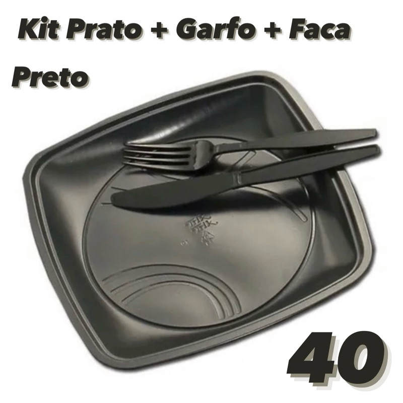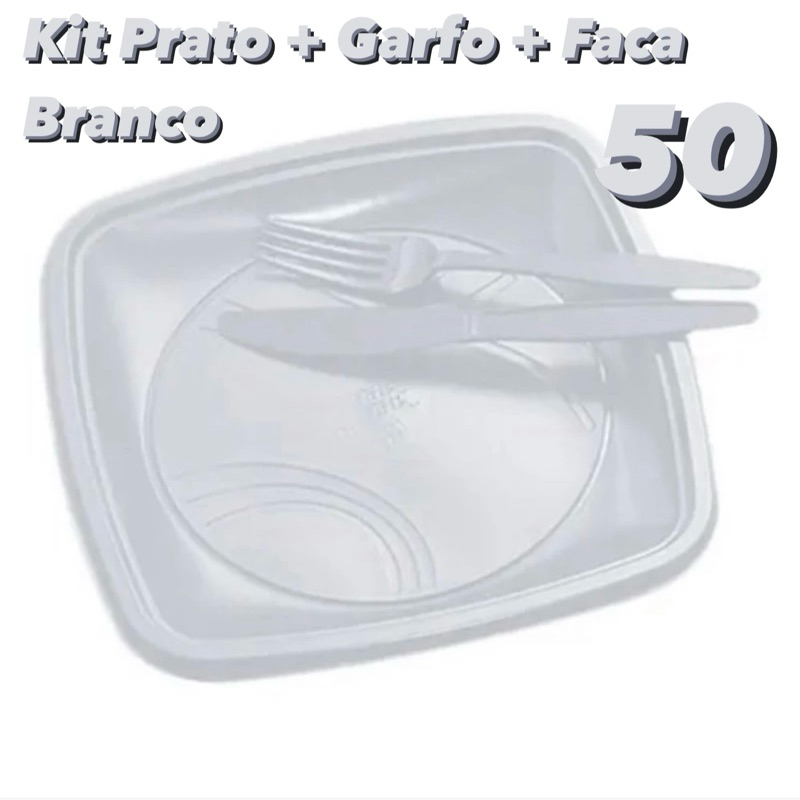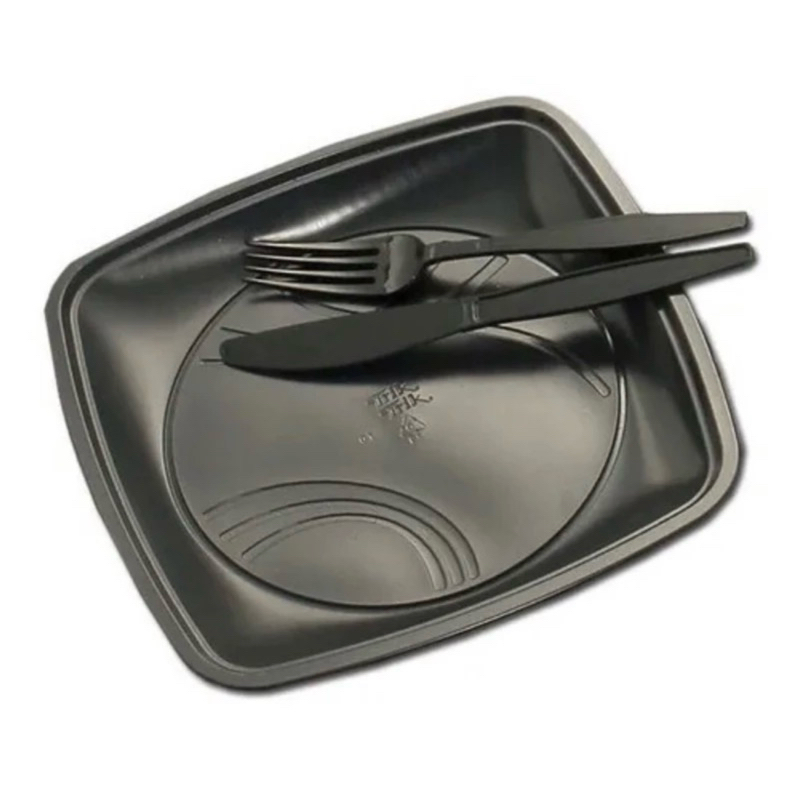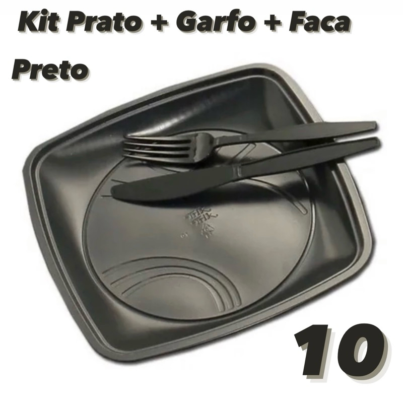 10~50 Kit Churrasco Prato Garfo e Faca 21cm Preto ou Branco Trik Trik