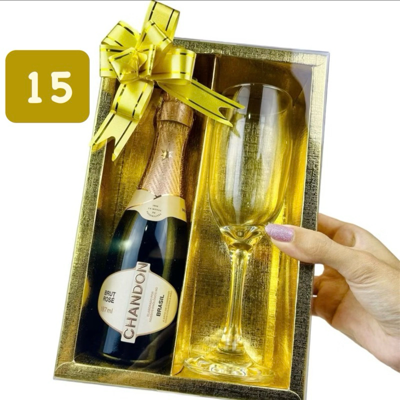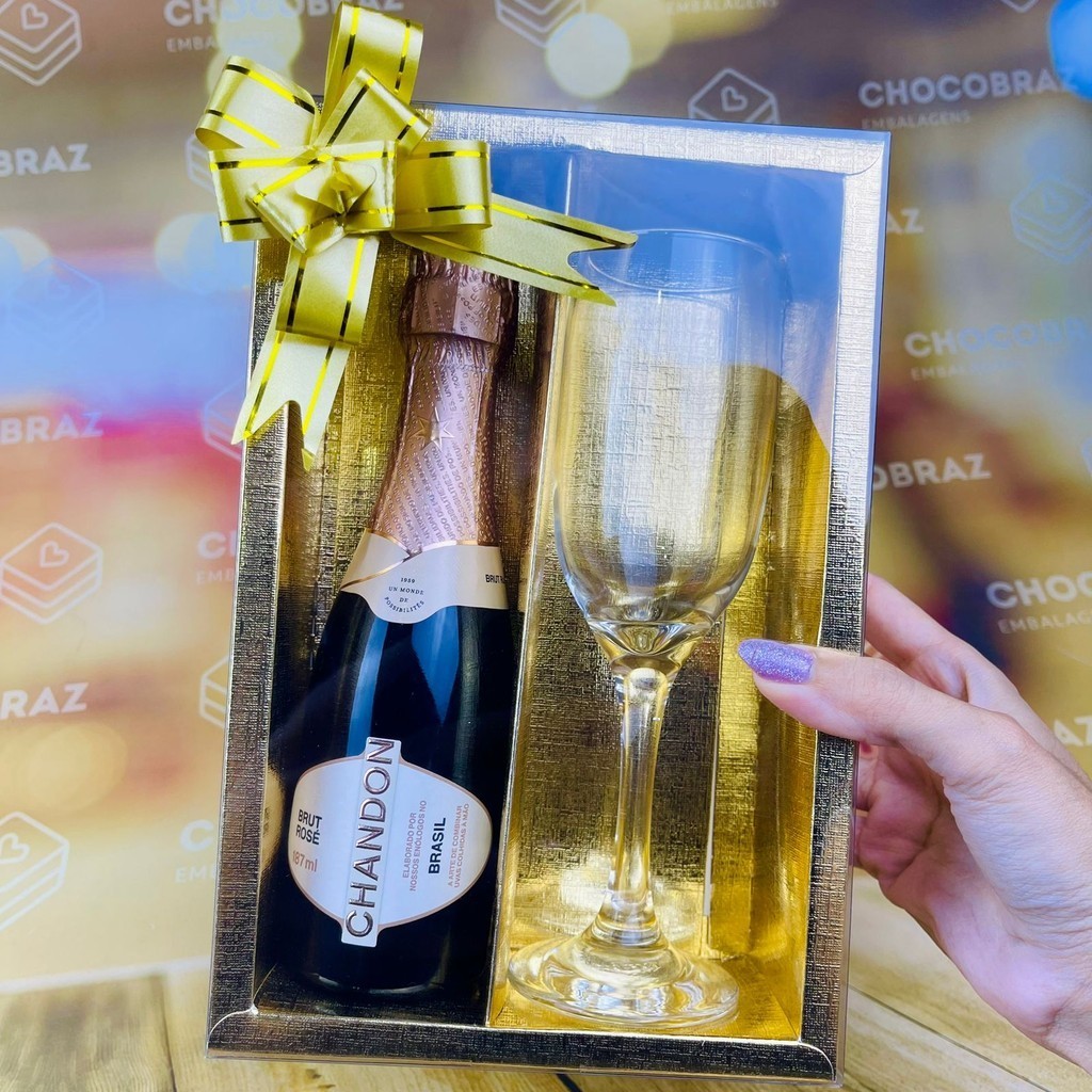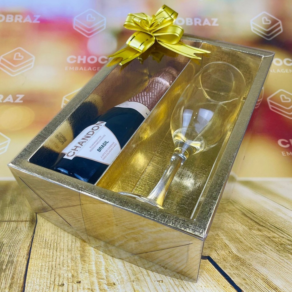 05~25 Caixa OURO com visor p/ Mini Champanhe e Taça ASSK