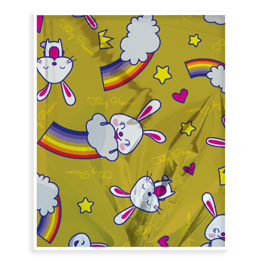 25 FOLHAS P/ OVO DE PÁSCOA METALIZADA 69X89 OURO ARCO IRIS Luckyfest