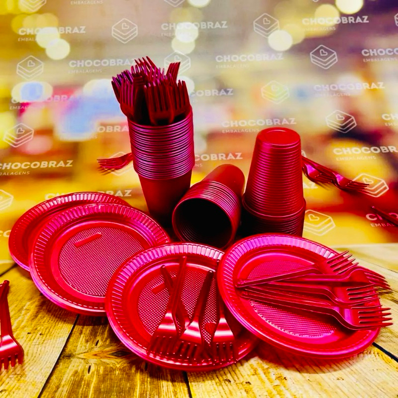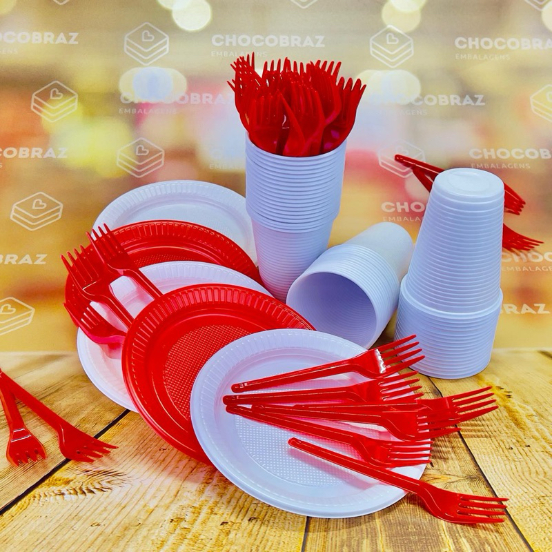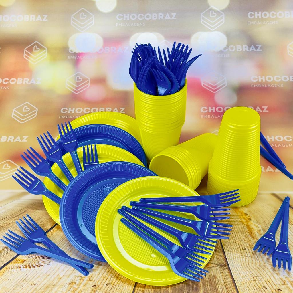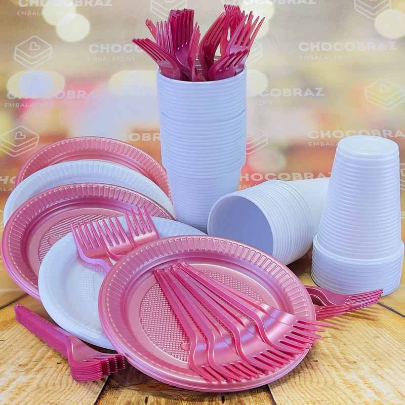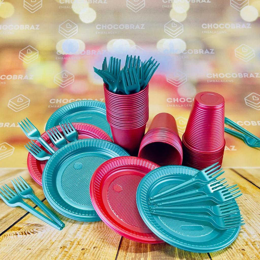 KIT FESTA DESCARTAVEIS 100 PESSOAS 300 ITENS 100 COPO + 100 PRATO + 100 GARFINHO 38 CORES