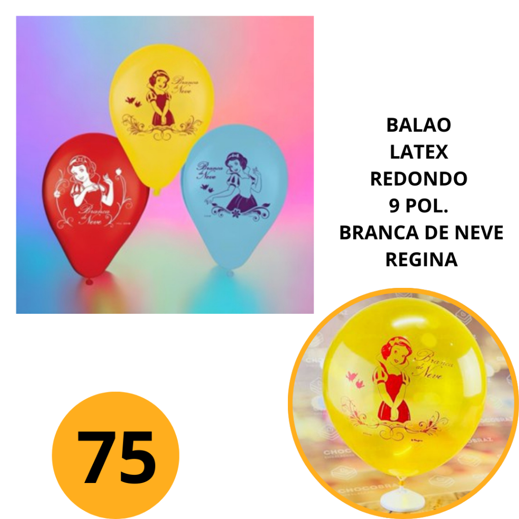 25~125 BALAO LATEX REDONDO 9 POL. BRANCA DE NEVE REGINA