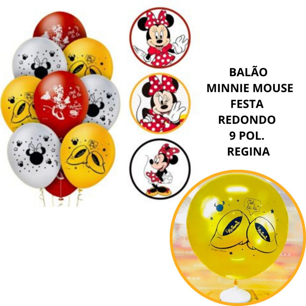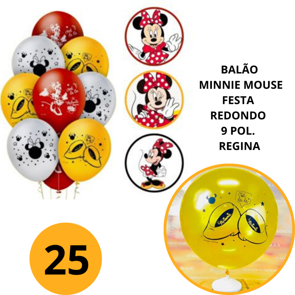 25~125 BALÃO MINNIE MOUSE FESTA REDONDO 9 POL. REGINA