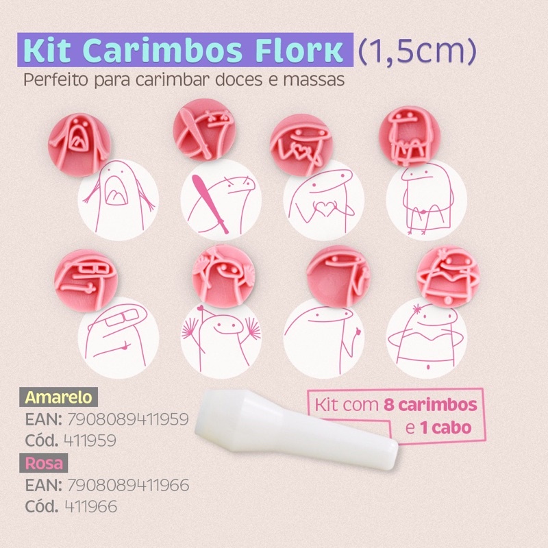 kit carimbos para doces flork meme bluestar 8 peças//