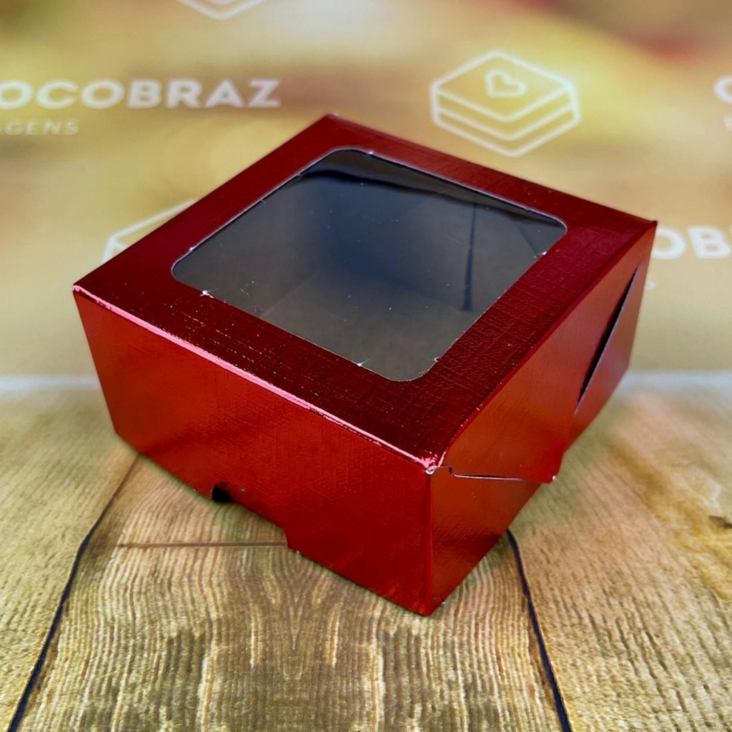 10 Caixa P/4 Doces VERMELHO Textura com Visor PVC 8,5x8,5x4