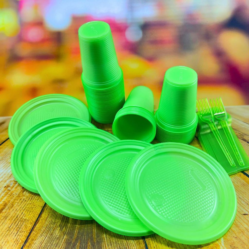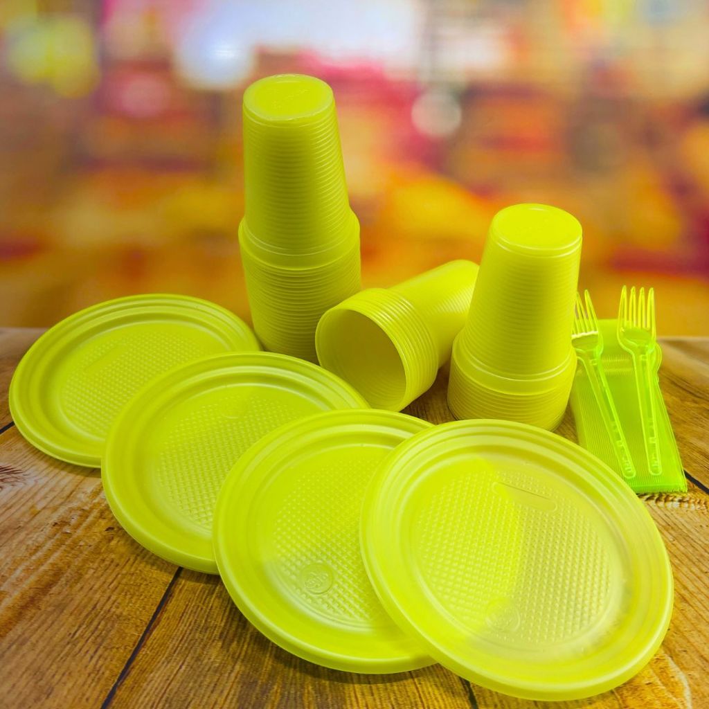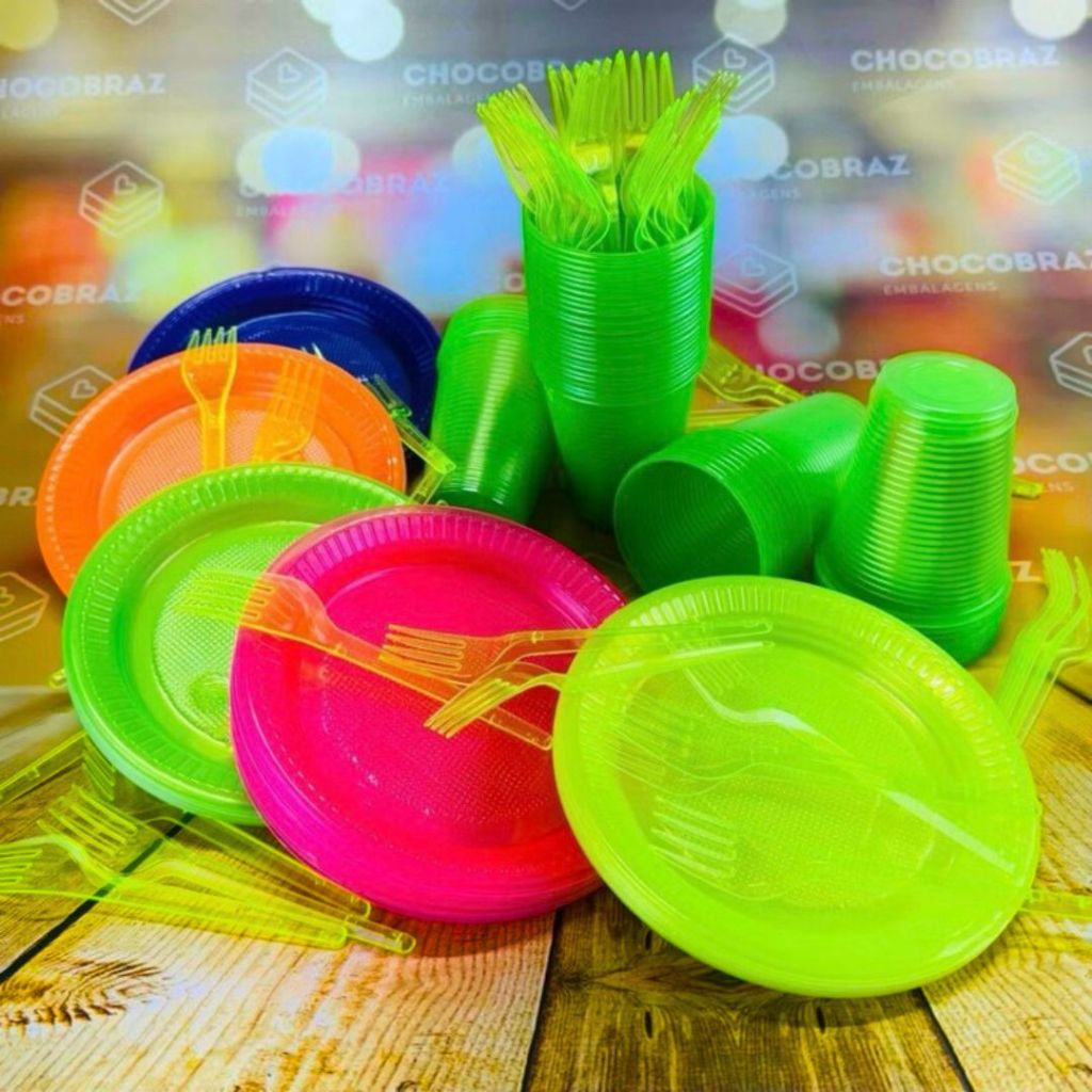 Kit Descartáveis para Festa 50~ 200 Pessoas Econômico NEON Garfo Prato e Copo Descartável