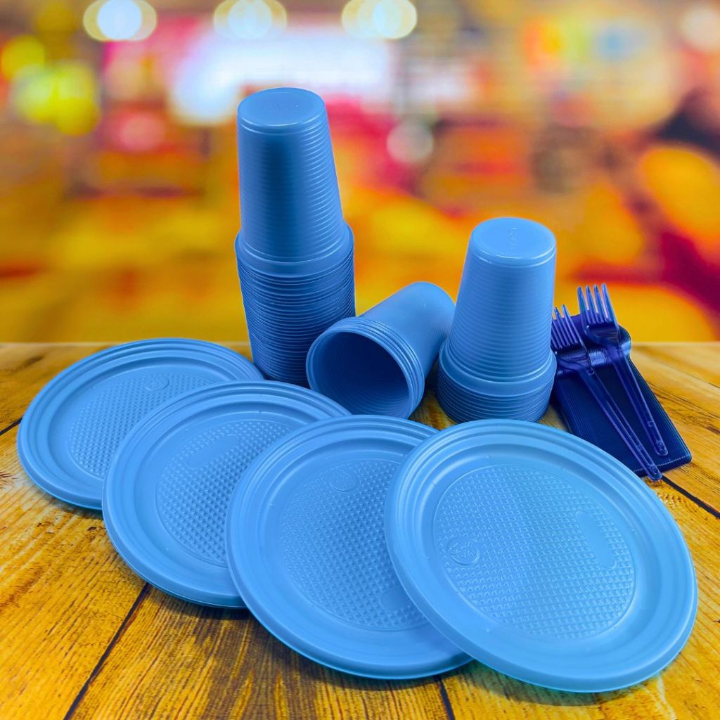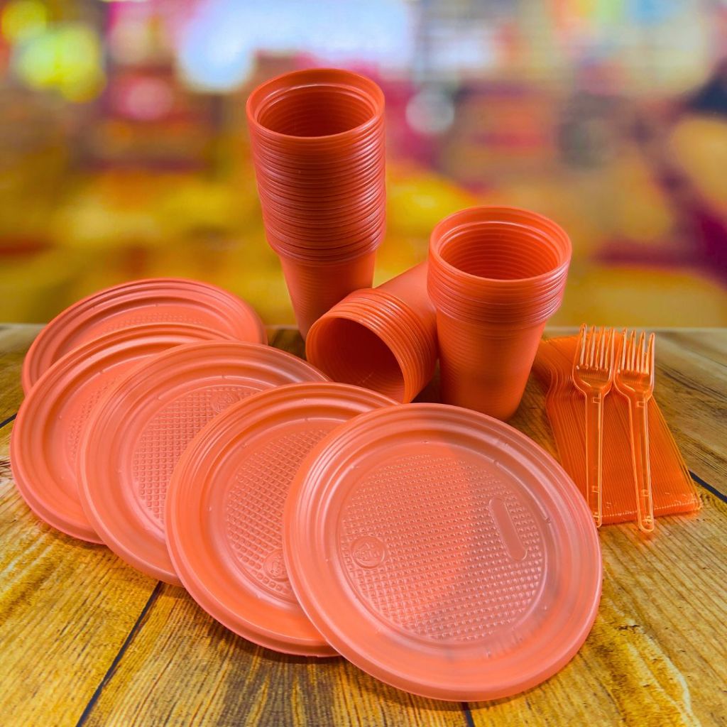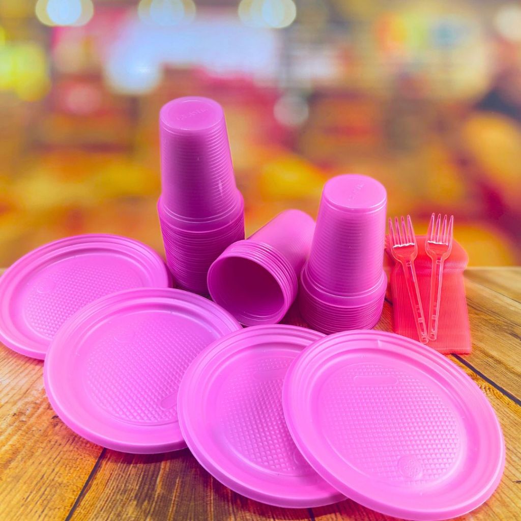 Kit Descartáveis para Festa 50~ 200 Pessoas Econômico NEON Garfo Prato e Copo Descartável