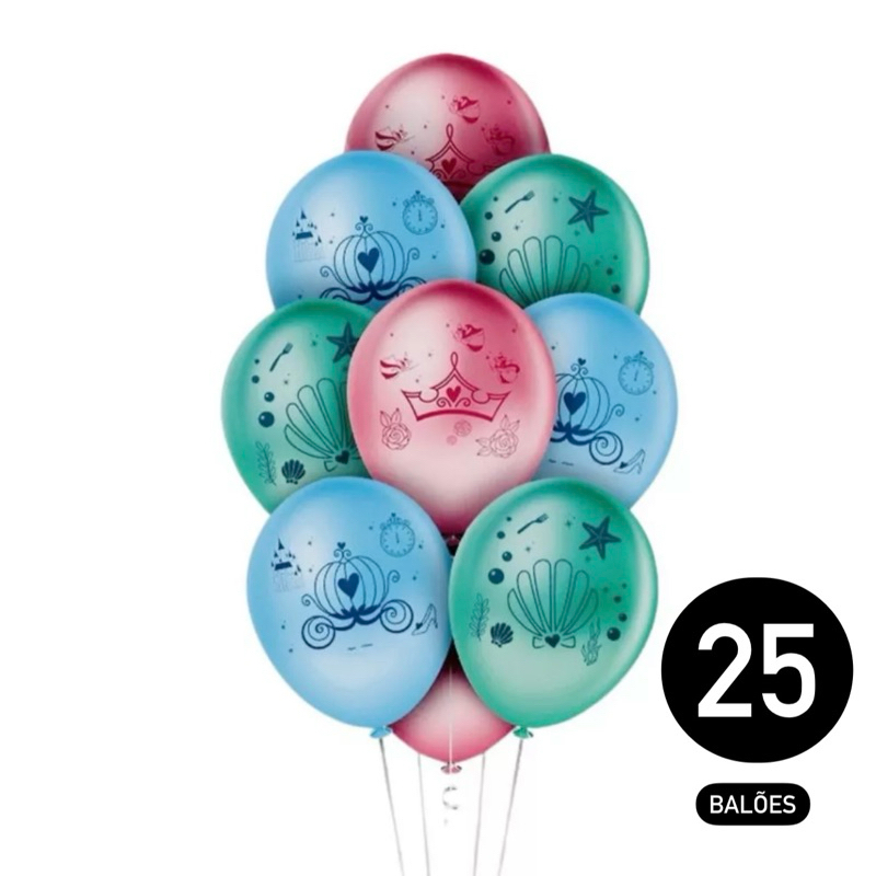 25~125 Balão Festa Princesas Disney Redondo 9 Pol. Regina