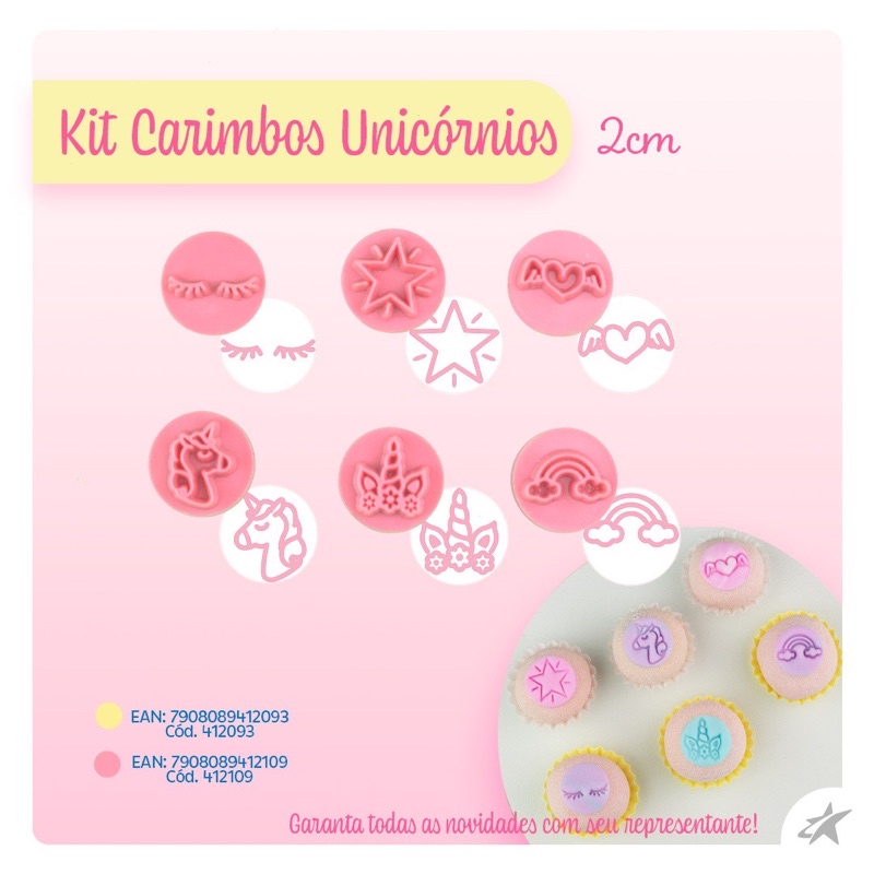 kit carimbos ROSA unicornios bluestar marcador de doces