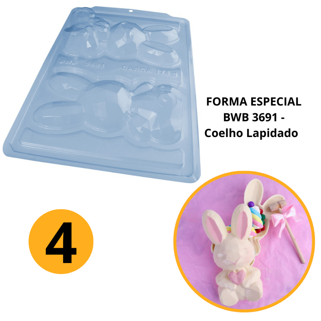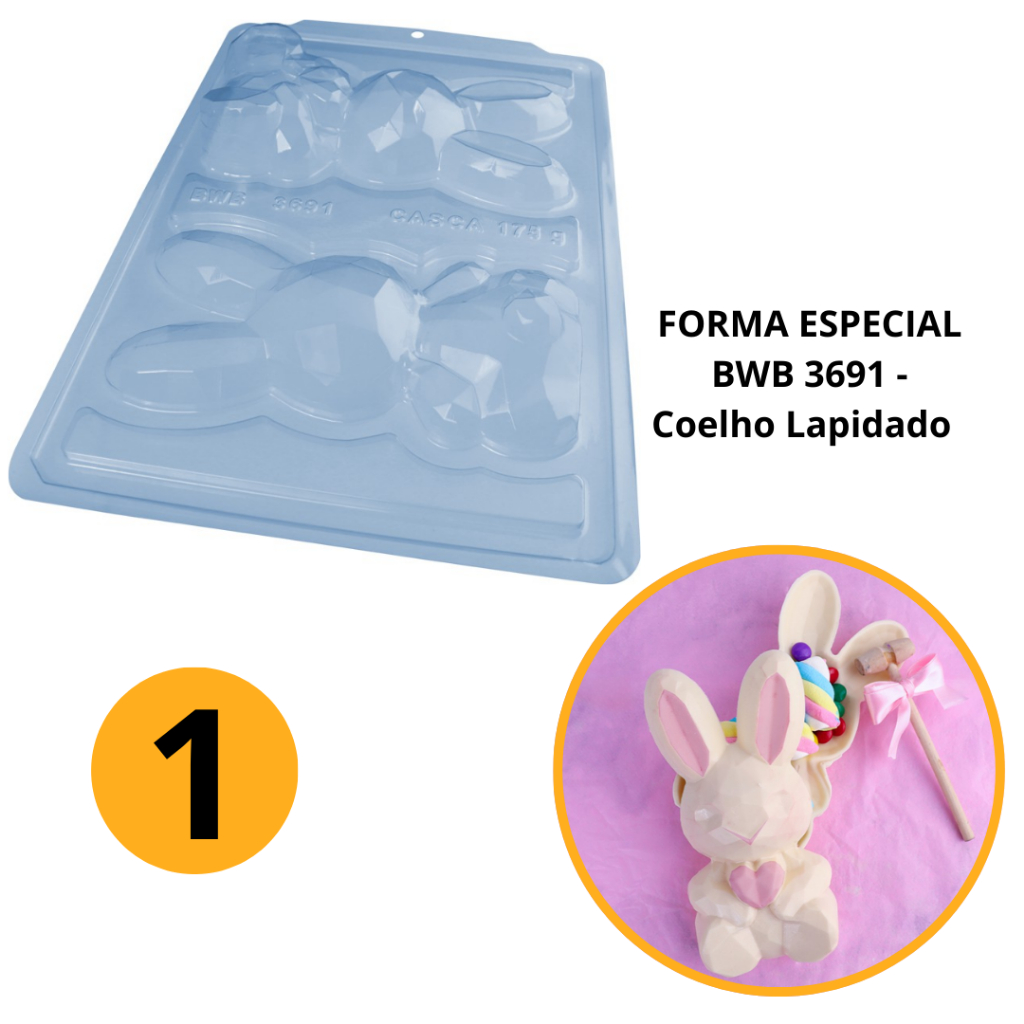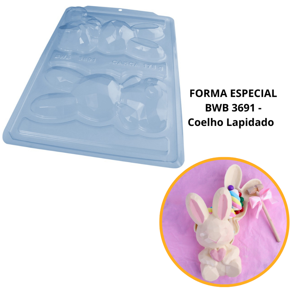 Forma Bwb Sp Coelho Lapidado Páscoa Silicone 3 Partes Cod-3691 (Sp Especial) (BWB PASCOA) (CHOCO)