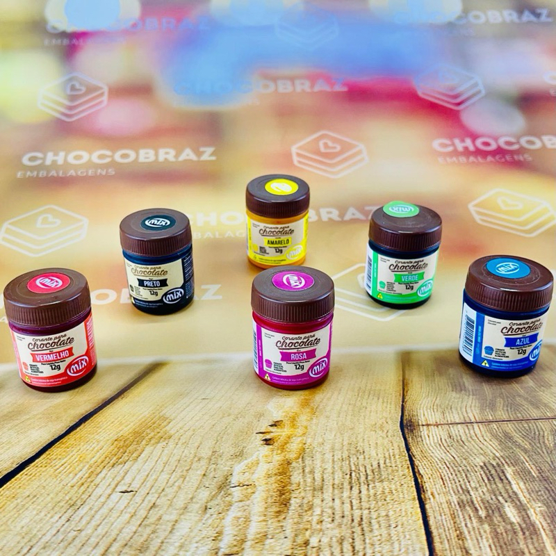 KIT 6 CORANTE PARA CHOCOLATE MIX 12G VERMELHO + AZUL + PRETO + AMARELO + VERDE + ROSA OFF
