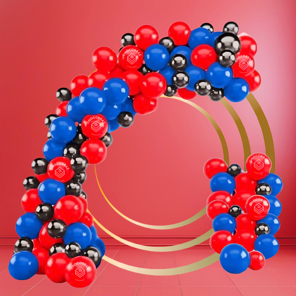 Kit 125 Balões AZUL 7" + VERMELHO 7" + PRETO CROMADO 5"-Balão Bexiga Liso/Cromado Para Festas KIT05