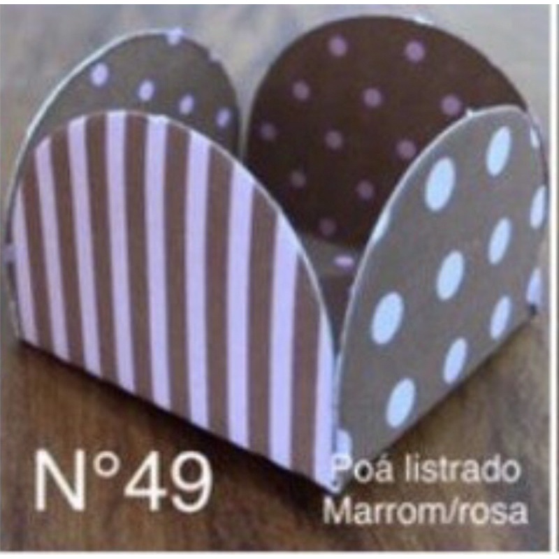 50 Forminhas Listras Poá Marrom/Rosa Para Doces 4 Pétalas 3,3X3,3X2,2 10.41 (Nc Toys Simples)