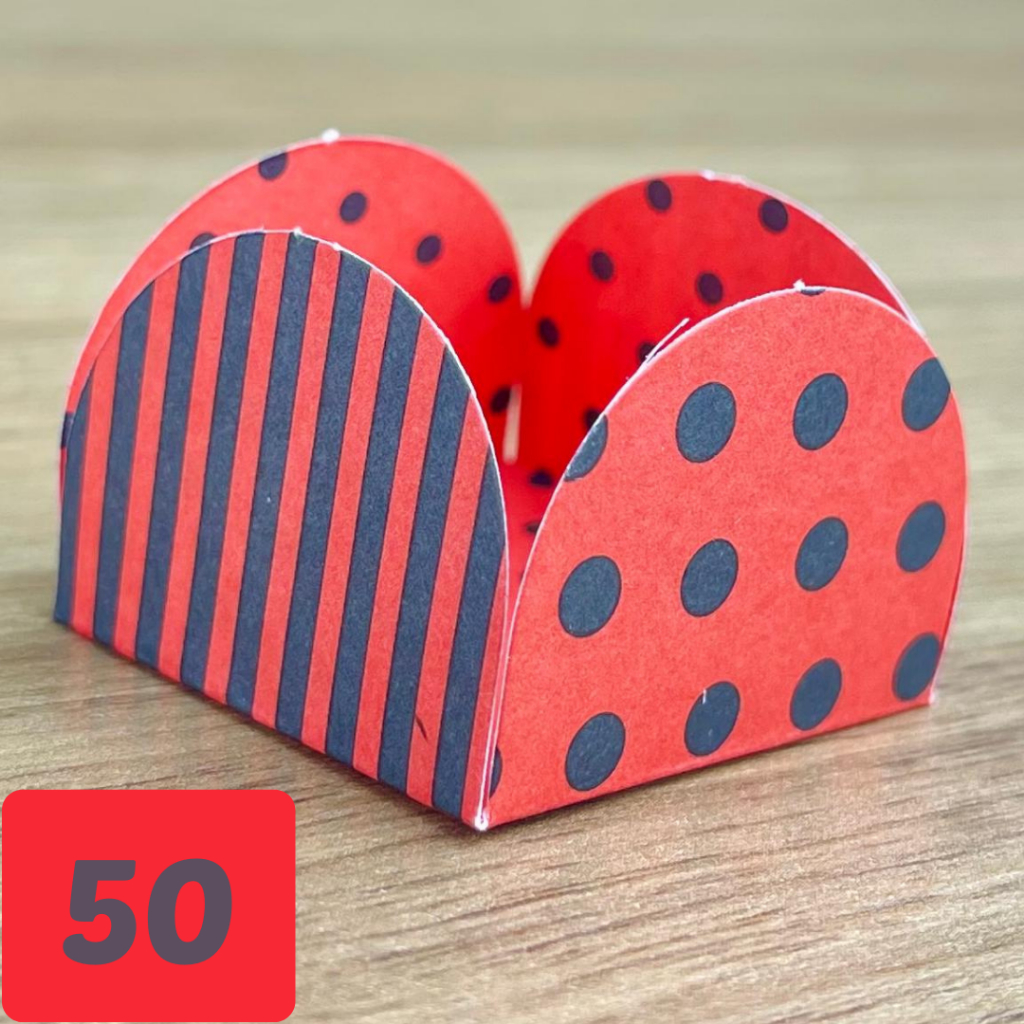 50~450 Forminhas Listras Poá Vermelho/Preto Para Doces 4 Pétalas 3,3X3,3X2,2 10.32 (Nc Toys Simples)