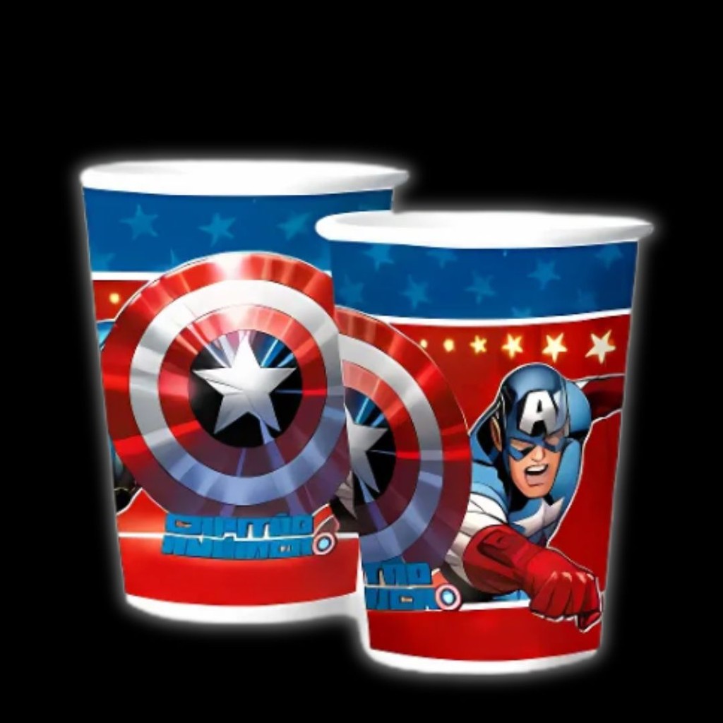 Kit Festa CAPITAO AMERICA 16 Pratos + 16 Copos Descartável 180 Ml Papel - REGINA