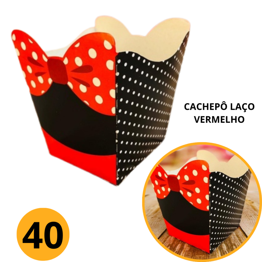 10~60 KIT CACHEPÔ DECORATIVO PAPEL FESTAS FLORES DECORAÇÃO COR TEMA LAÇO VERMELHO RATINHA 32.1