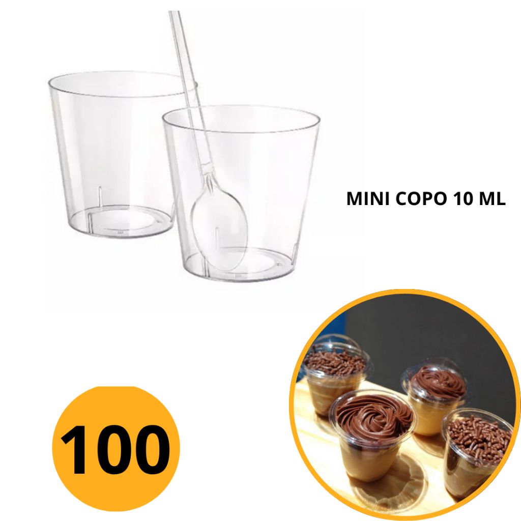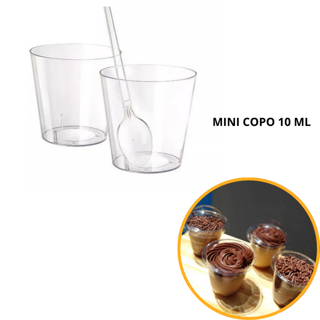 KIT 100~500 COPINHO 10 ML BRIGADEIRO ACRÍLICO + 100~500 MINI COLHER CRISTAL//