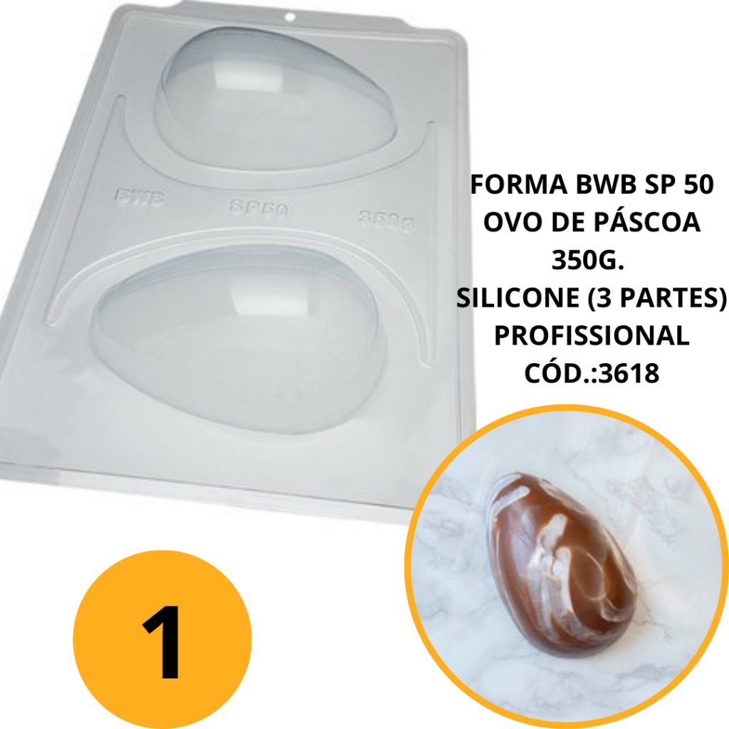 1~4 FORMA BWB SP 50 OVO DE PÁSCOA 350g. SILICONE (3 PARTES) PROFISSIONAL CÓD.:3618 (SP ESPECIAL) (CHOCO)