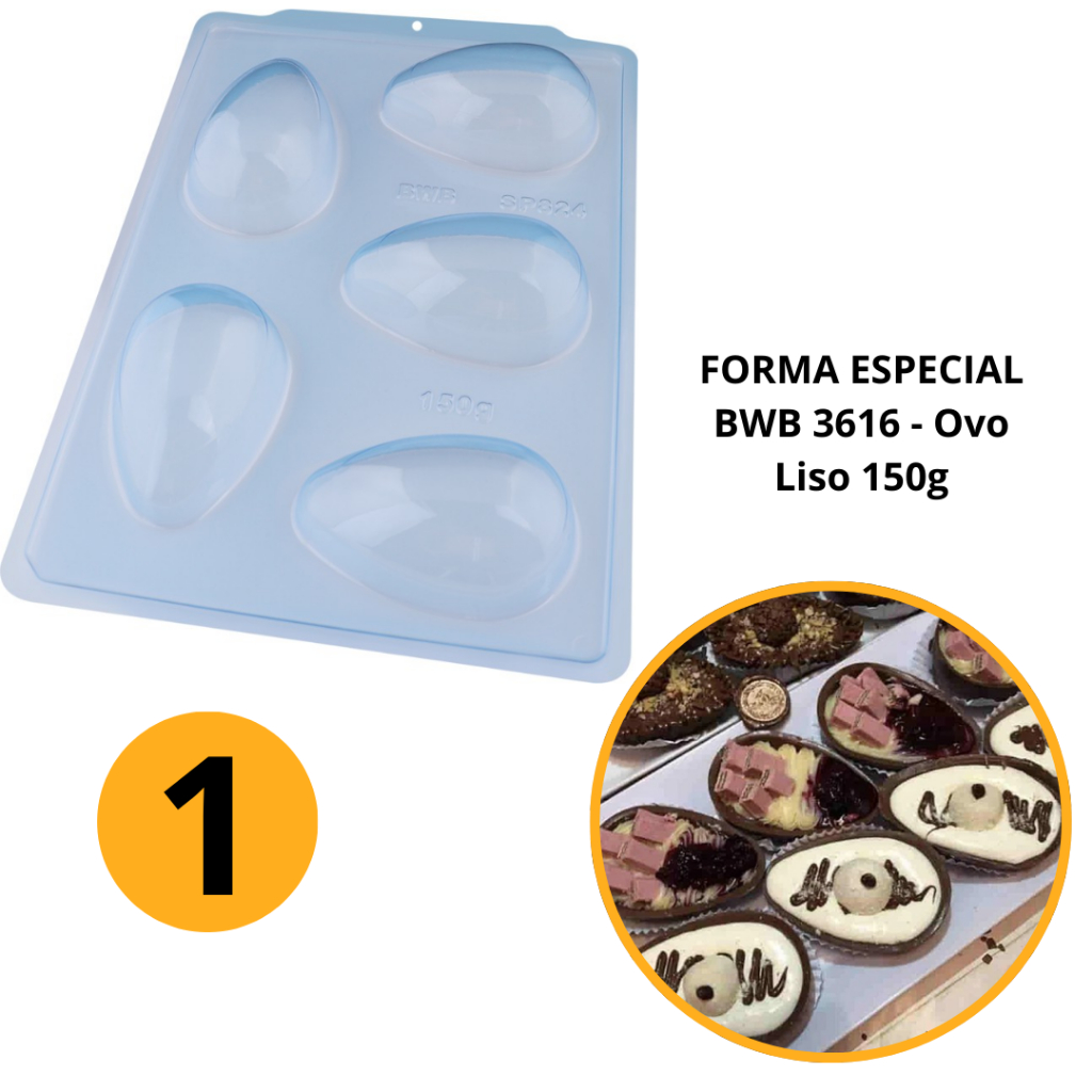 1~4 Forma Bwb Sp 824 Ovo De Páscoa Liso Silicone 3 Partes 150g Profissional Cod-3616 (Sp Especial) (BWB PASCOA) (CHOCO