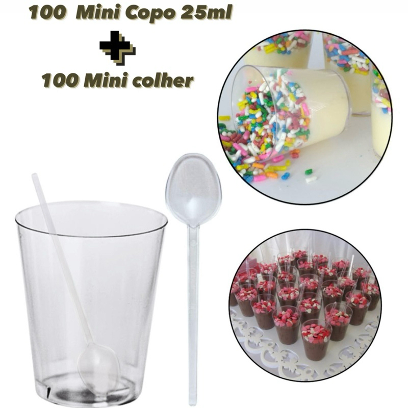 KIT 100~500 COPINHO 25 ML BRIGADEIRO ACRÍLICO + 100~500 MINI COLHER CRISTAL BRIGADEIRO DE COPO MINI COPINHOS