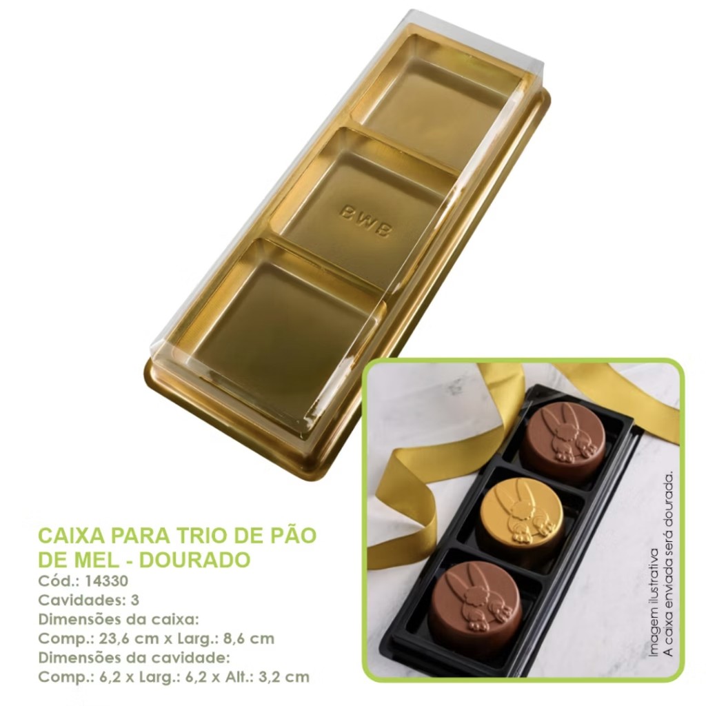 10~50 CAIXA PARA TRIO DE PÃO DE MEL - DOURADO BWB 14330 (CHOCO)