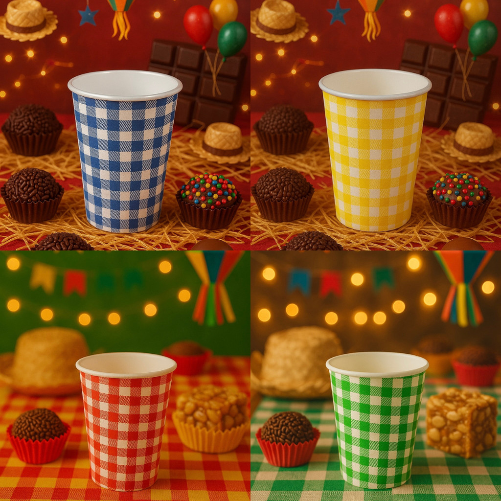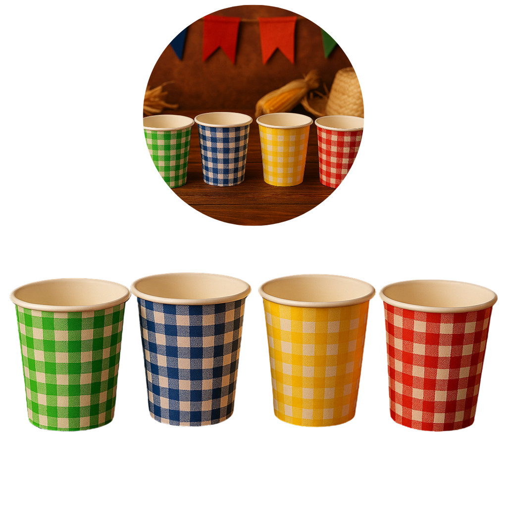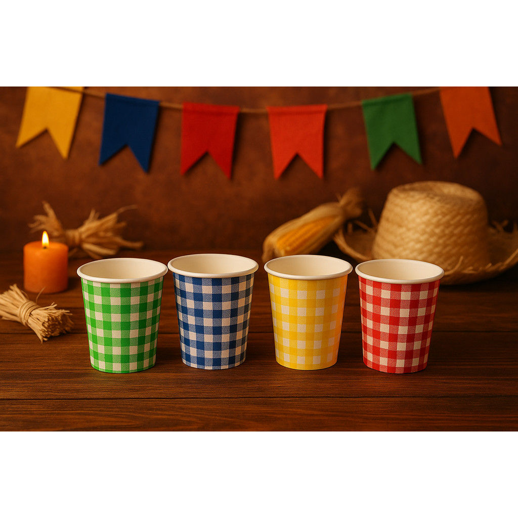 40 COPOS DE PAPEL 200ML XADREZ MISTO ( SILVER FESTAS ) FESTA JUNINA 2025
