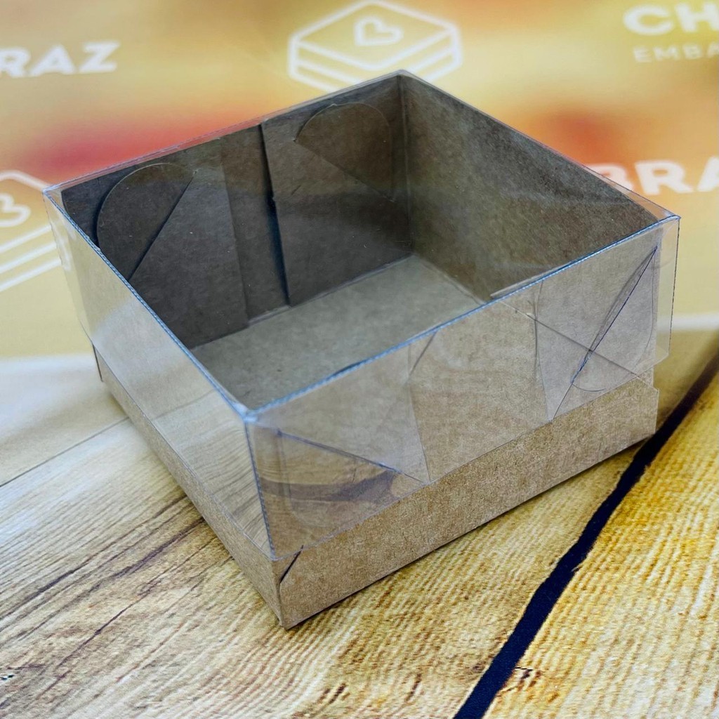 10~50 CAIXA P/ 04 DOCES KRAFT C/ TAMPA ACETATO 7X7X4 5042 (IDEIA) ESSENCIAL