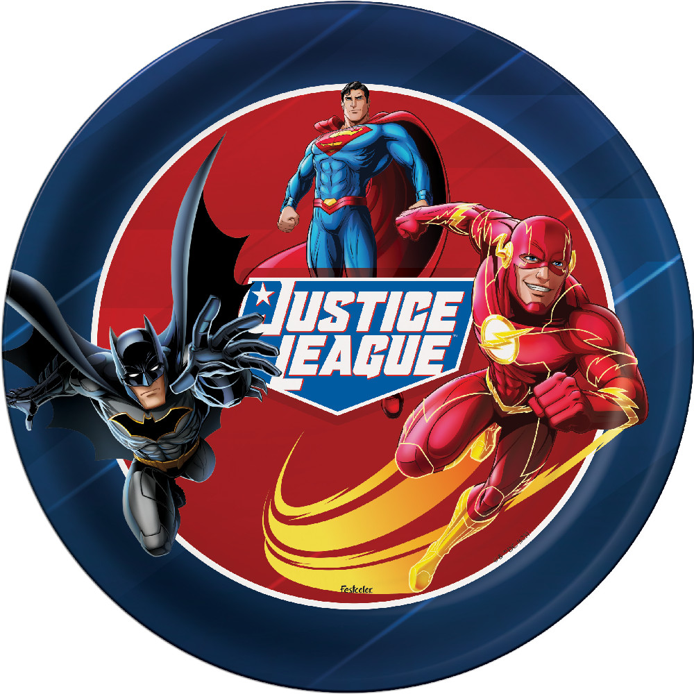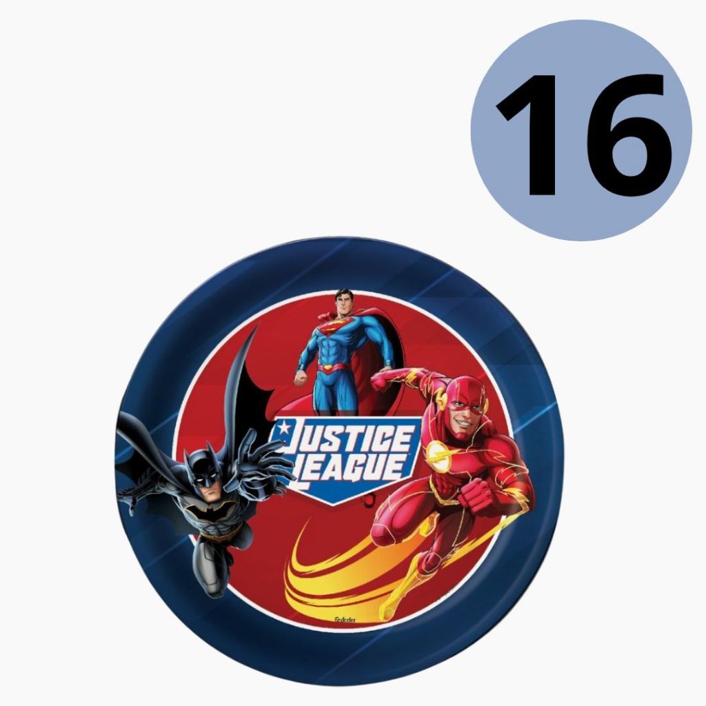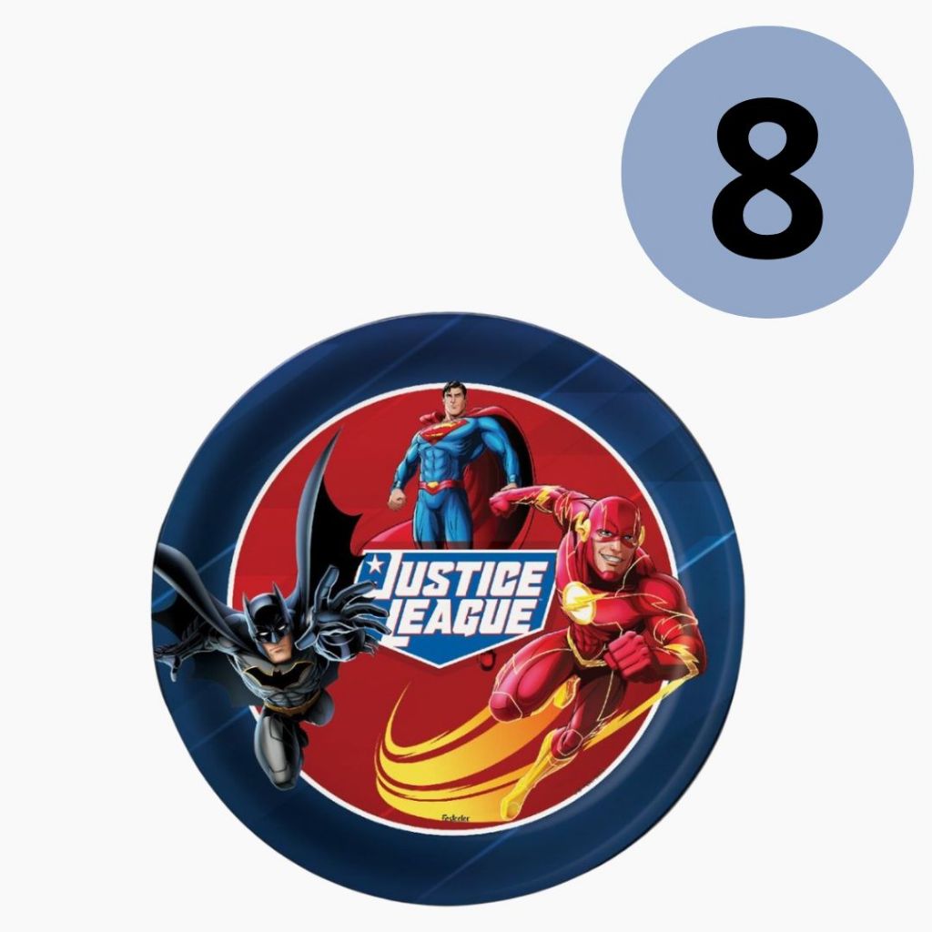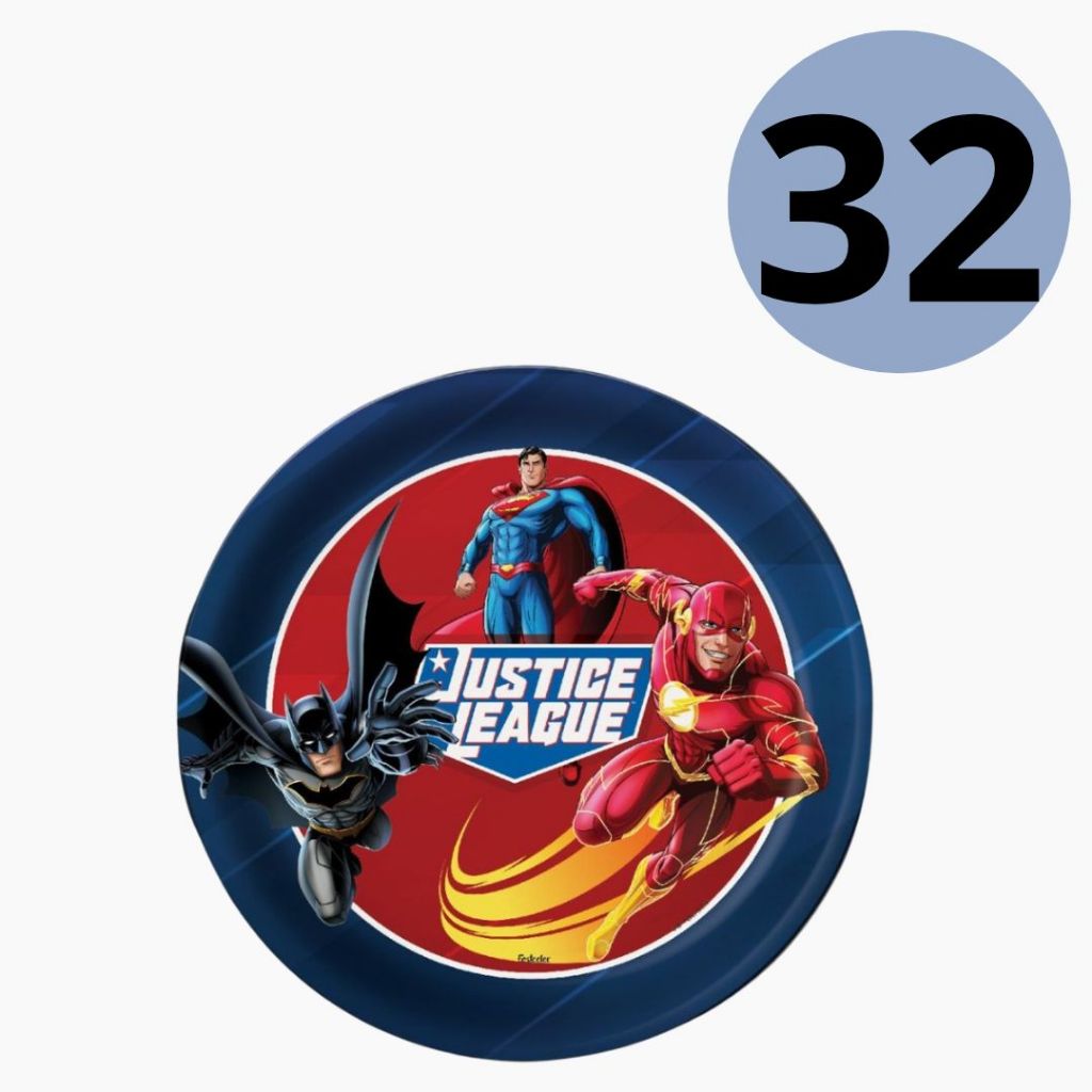 8 ~32 PRATO FESTA LIGA DA JUSTIÇA DE PAPEL 18 CM FESTCOLOR