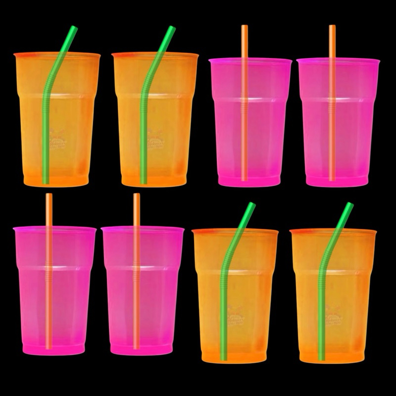 Kit 100~300 Copos Neon 300ml m Descartável Para Drink Bebida Festa Aniversário OFF