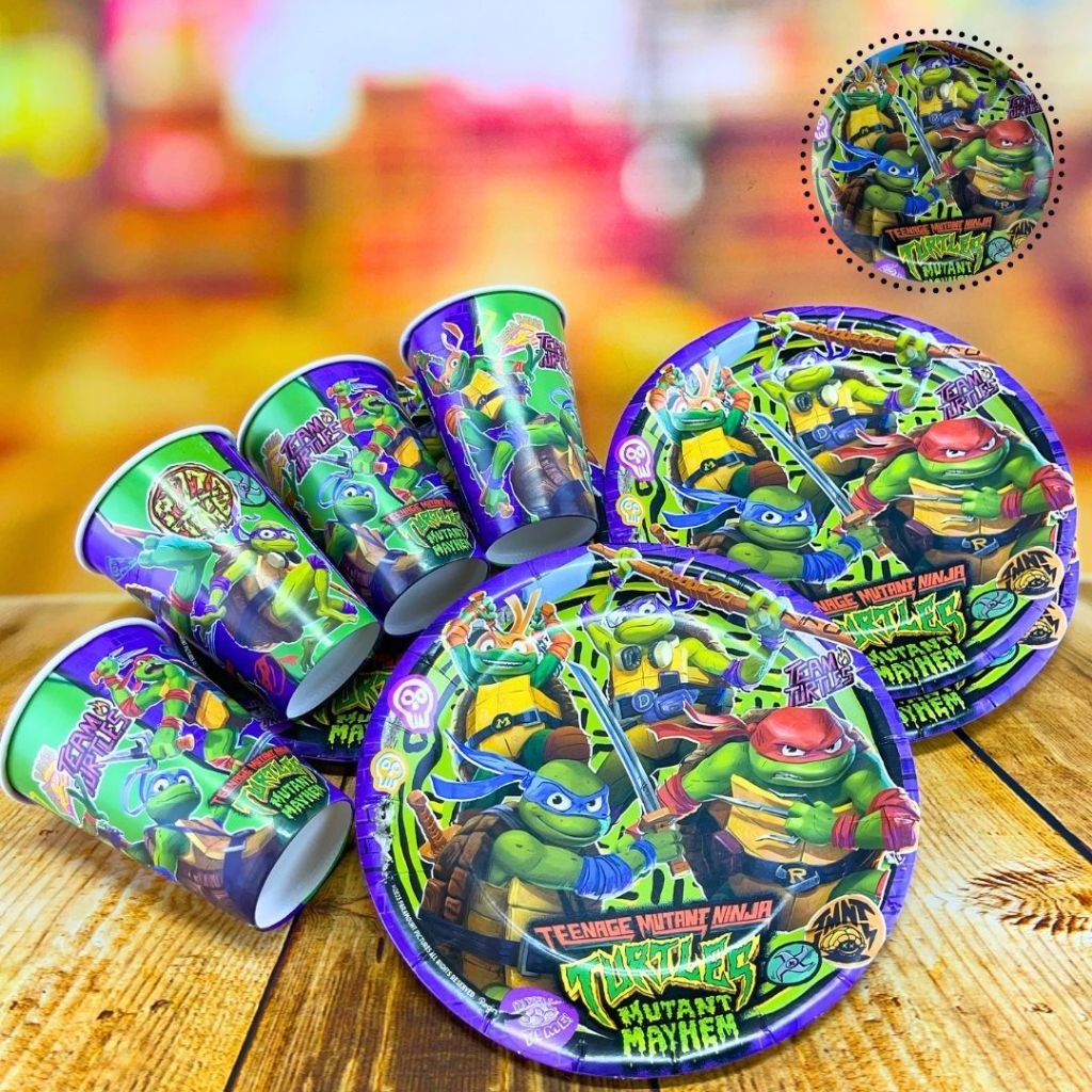 KIT FESTA TARTARUGA NINJA 8 PRATOS + 8 COPOS DESCARTÁVEL 180 ML PAPEL - REGINA