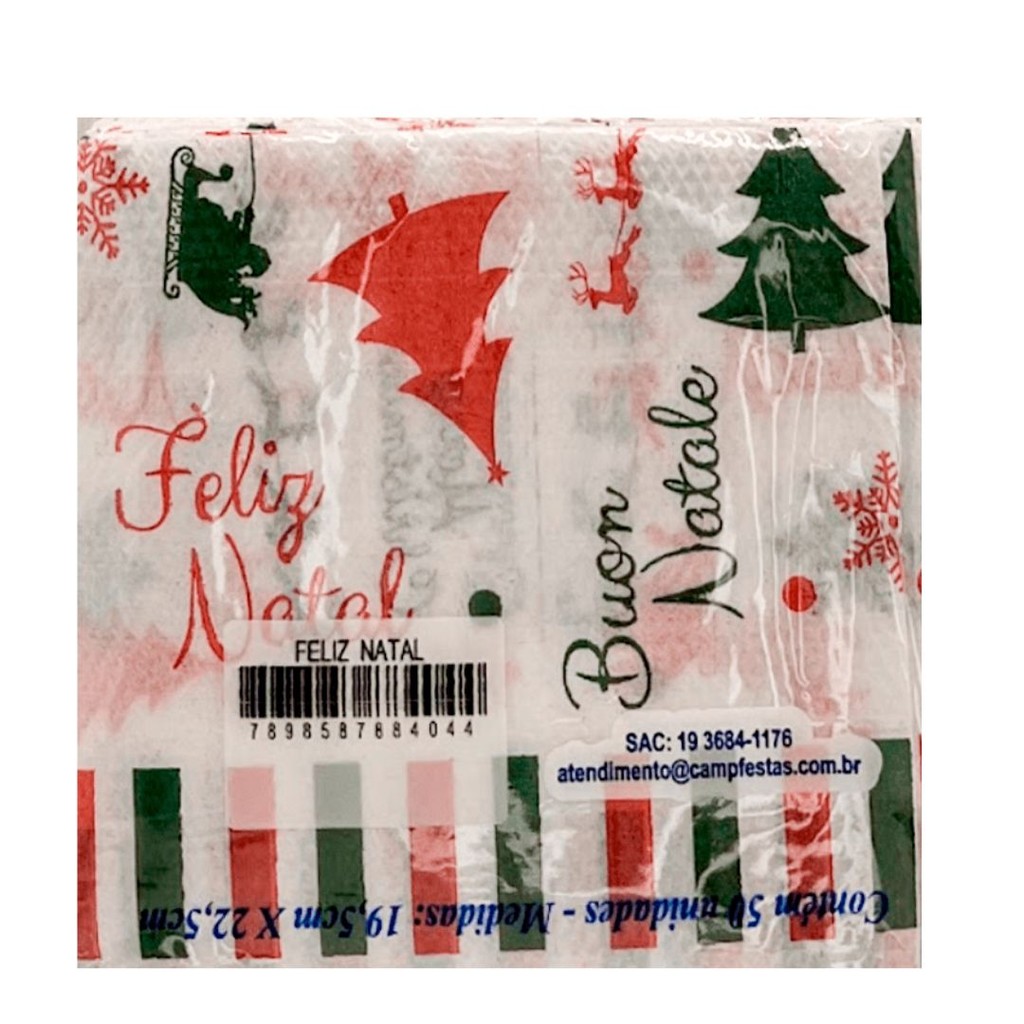 200 GUARDANAPOS FELIZ NATAL FESTA 19,5 X 22,5 CAMPFESTA