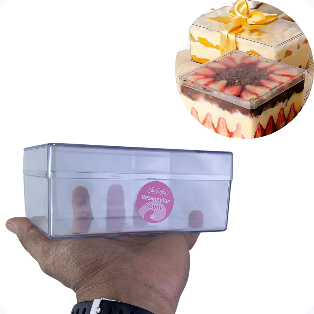CAKE BOX CRISTAL RETANGULAR COM TAMPA 500 Ml (Blue Star)
