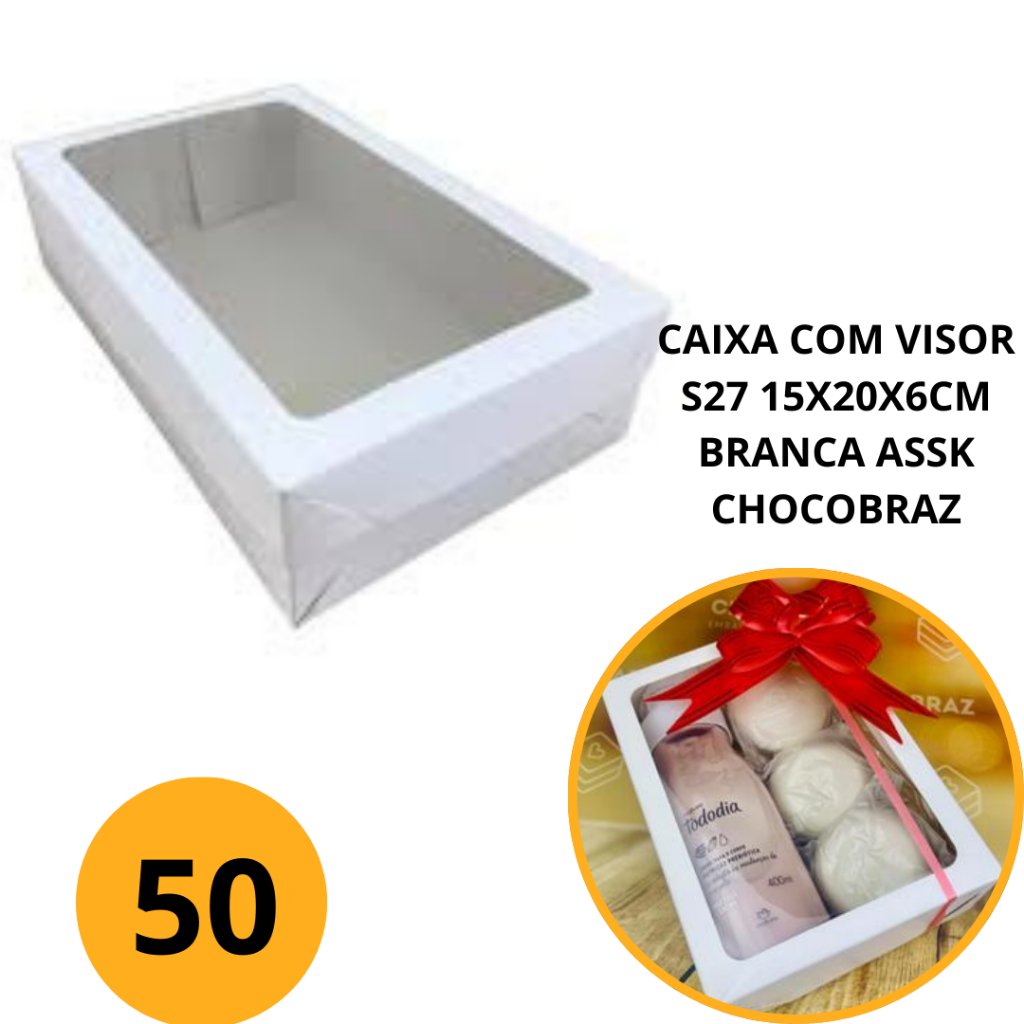 10~50 CAIXA COM VISOR S27 15X20X6CM BRANCA ASSK CHOCOBRAZ