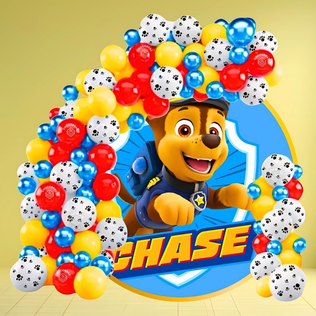 Kit 150 Balões PATRULHA CANINA VERMELHO 7”+ AMARELO 7”+ PATAS 9" + AZUL Metalizado 5” KIT28