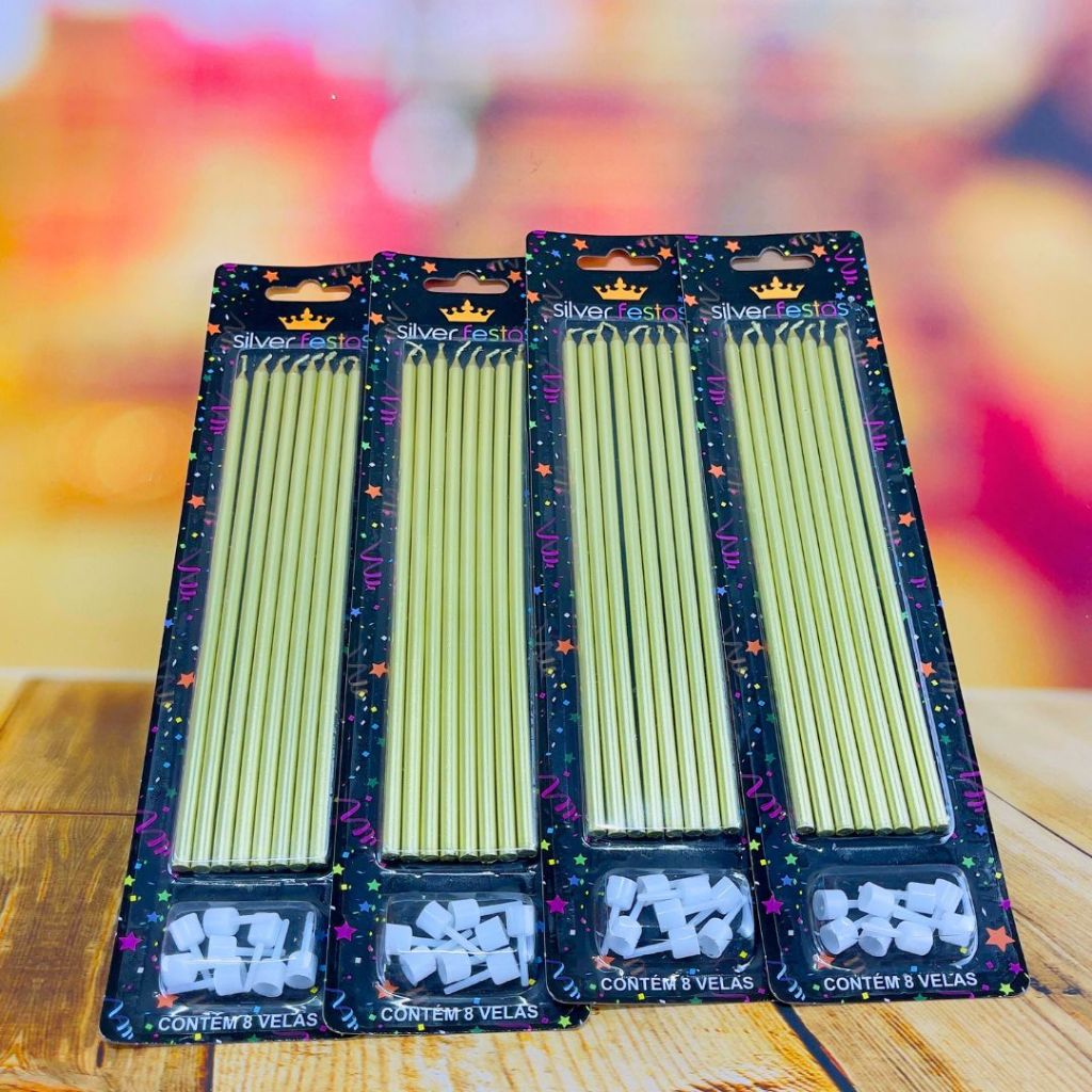 KIT 8 VELAS PALITO GIGANTE METALIZADA (SILVER FESTA)