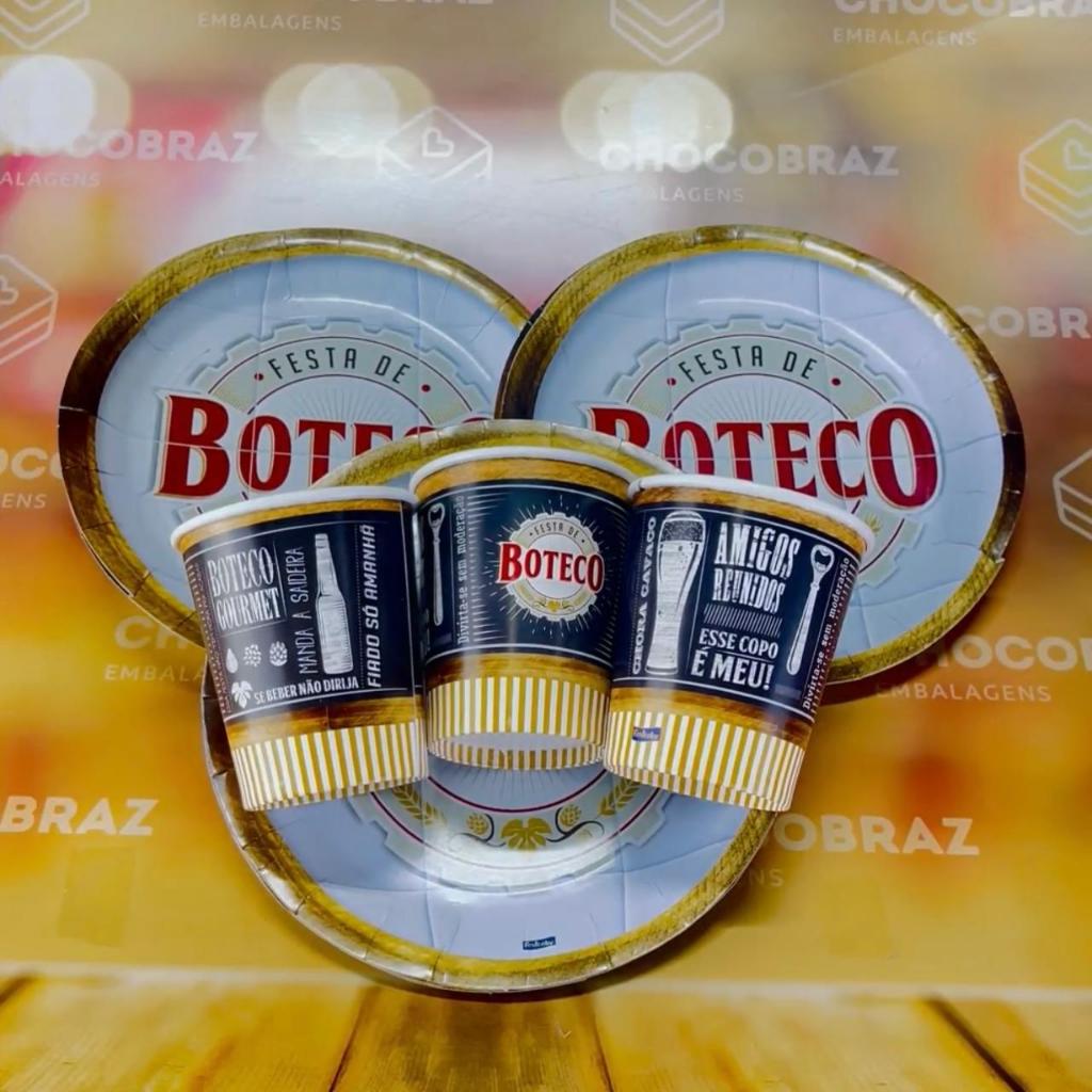 Kit Festa BOTECO 16 Pratos + 16 Copos Descartável 200 Ml Papel - FESTCOLOR