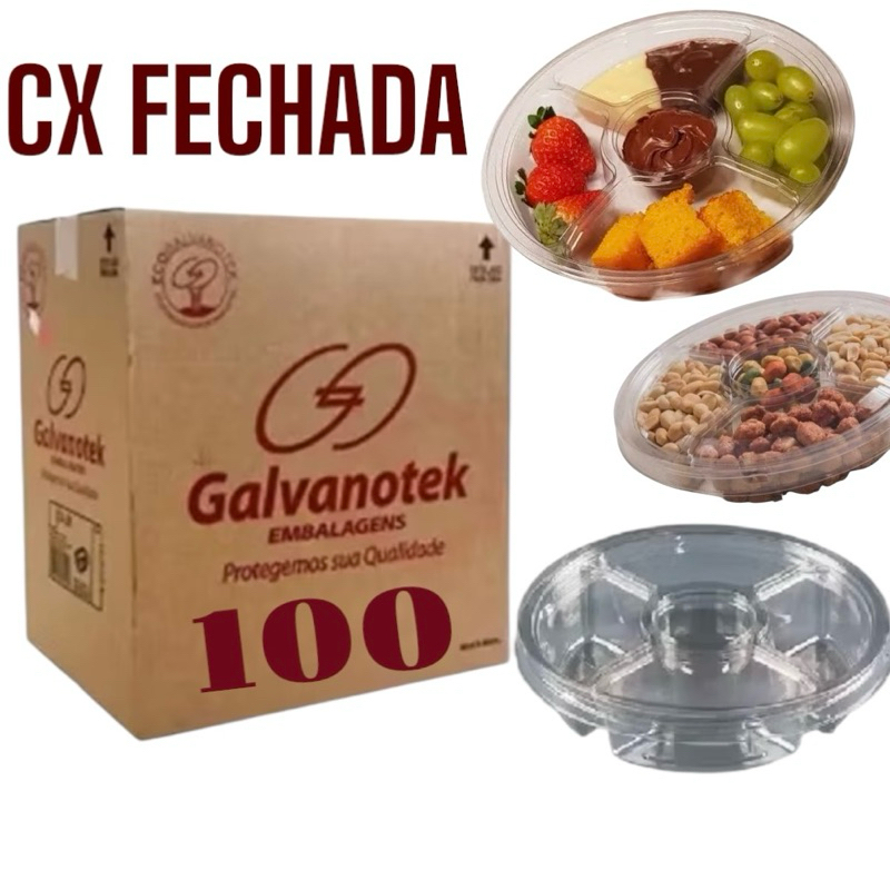 Cx c/100 Embalagem Petisqueira 4 Divisórias G540 Transparente Com Tampa Galvanotek