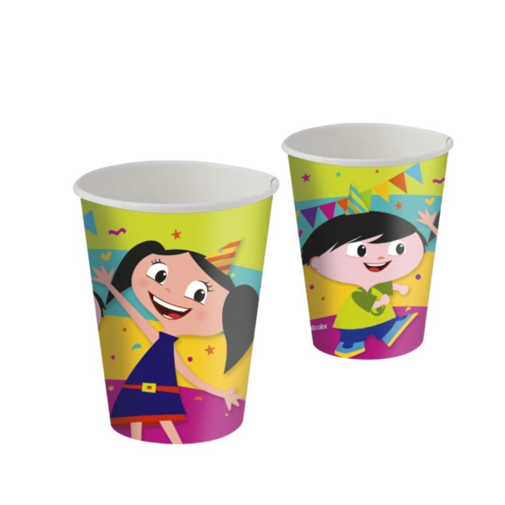 KIT FESTA FESTA SHOW DA LUNA 8 PRATOS + 8 COPOS DESCARTÁVEL 200 ML PAPEL - FESTCOLOR