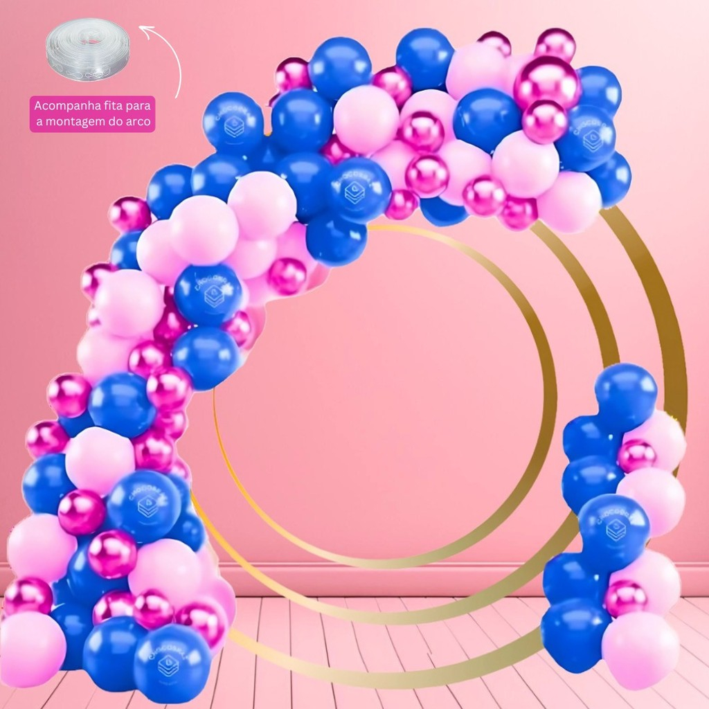 Kit 150 Balões ROSA 7”+ AZUL 7”+ PINK Metalizado 5”+ FITA Balão Bexiga KIT76+F