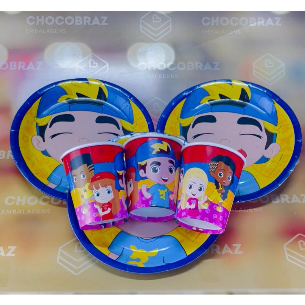 Kit Festa LUCCAS NETO 8 Pratos + 8 Copos Descartável 200 Ml Papel - FESTCOLOR