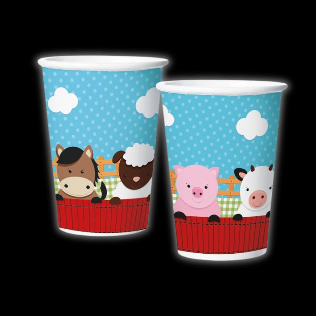 Kit Festa FAZENDINHA 8 Pratos + 8 Copos Descartável 180 Ml Papel - REGINA