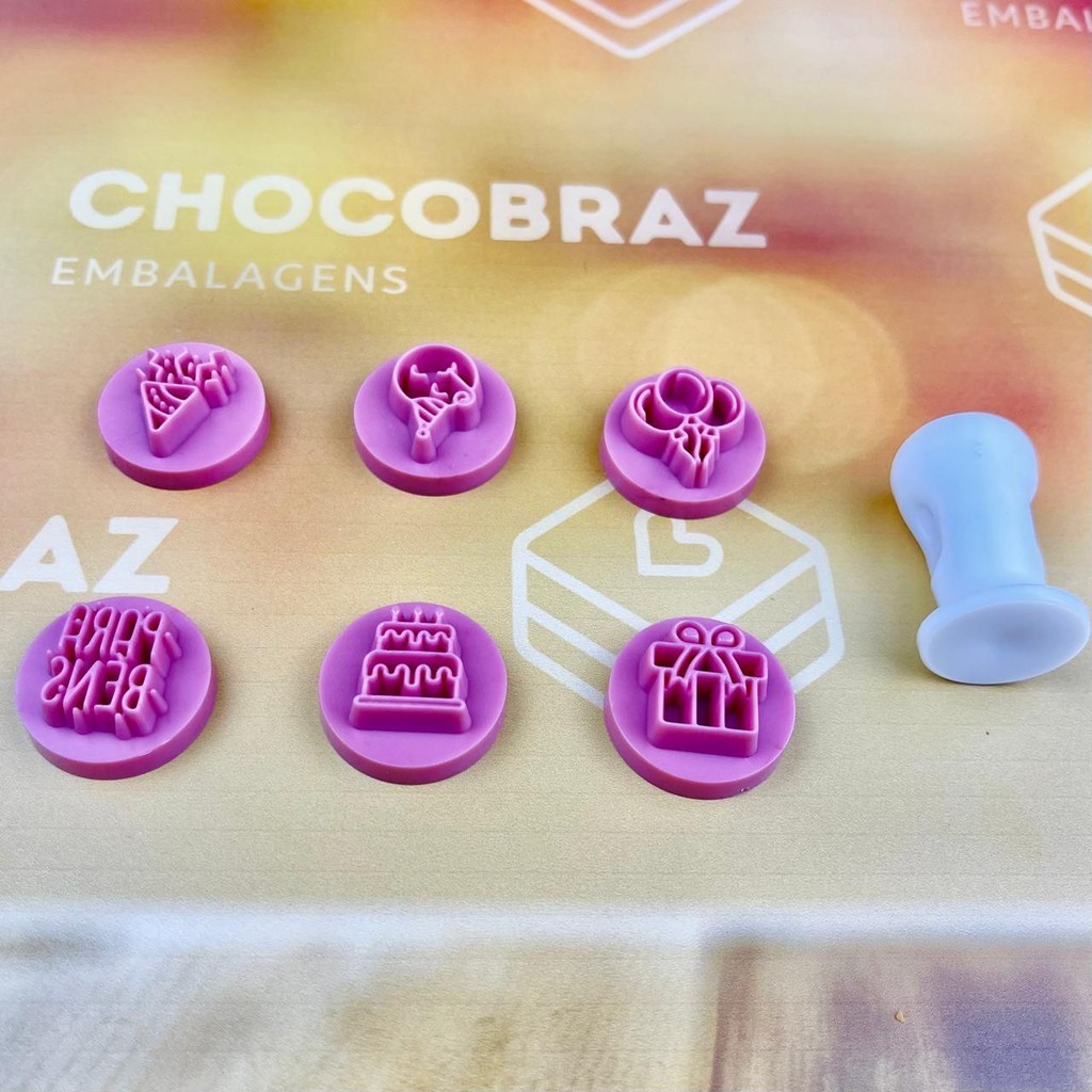Kit 6 Peças Carimbos Parabéns Rosa Bebê 2 cm (Blue Star)