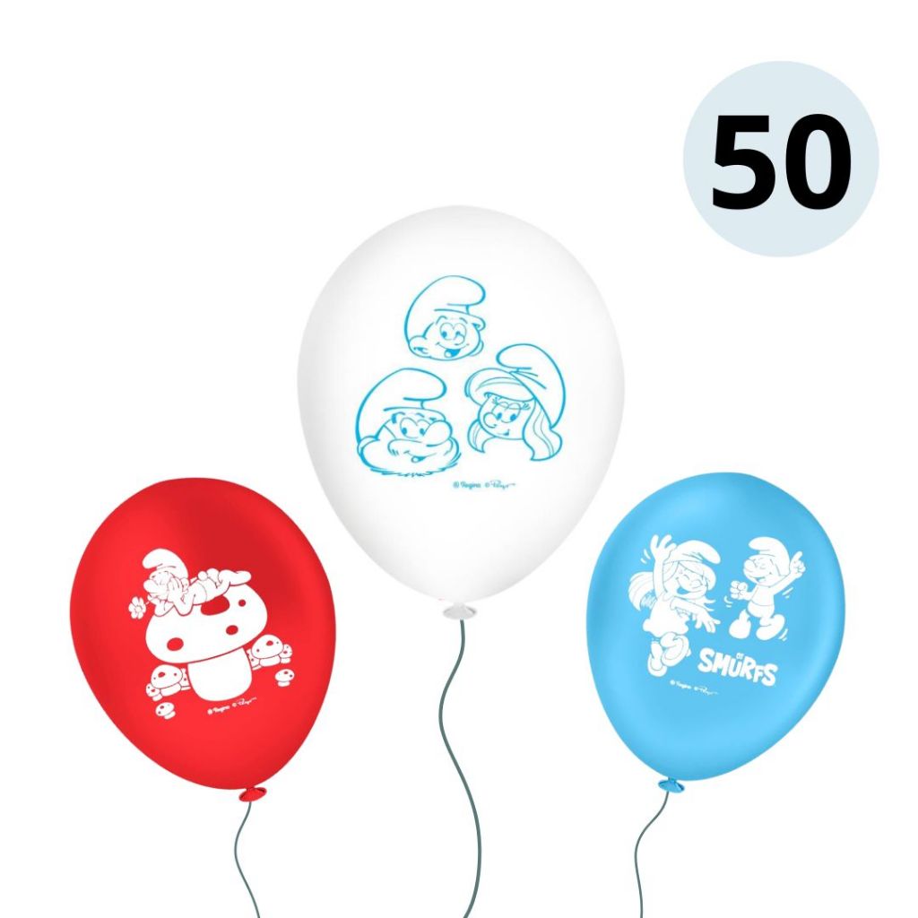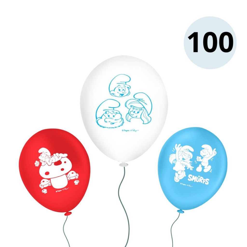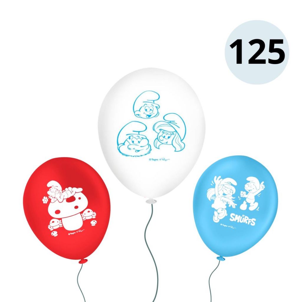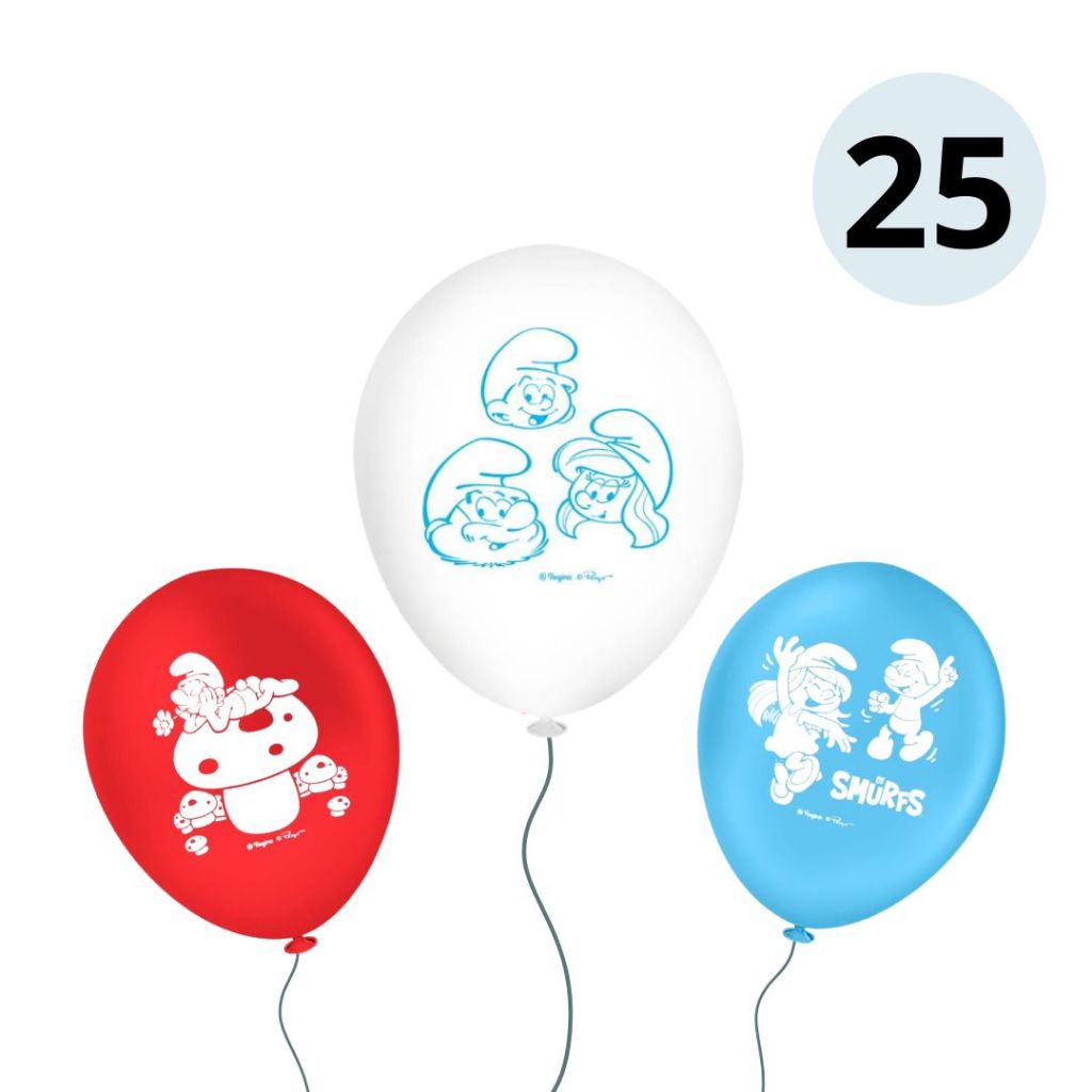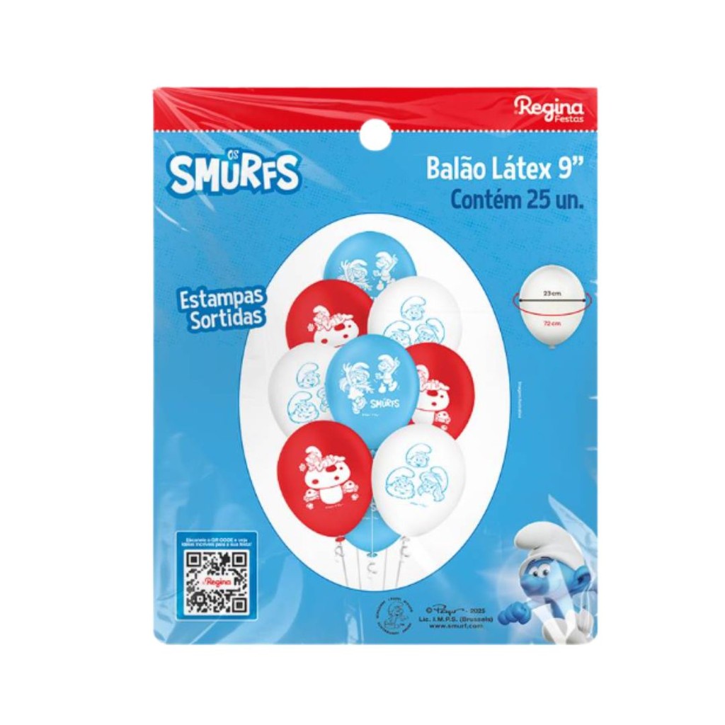 25~125 BALÃO LATEX REDONDO 9 pol. OS SMURFS REGINA