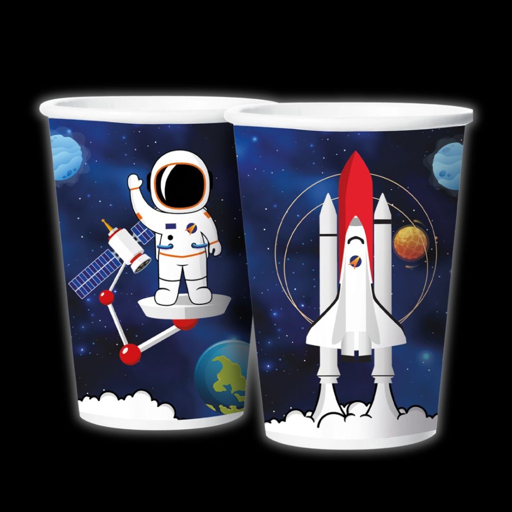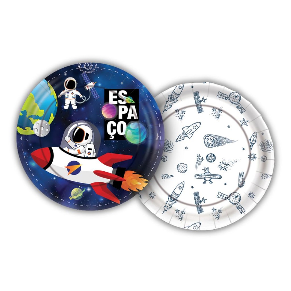Kit Festa ASTRONAUTA ESPACIAL 8 Pratos + 8 Copos Descartável 180 Ml Papel - REGINA