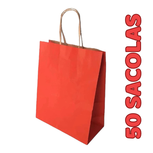 10~50 SACOLA DE PAPEL VERMELHA 21,5X17,5X8,5 (LC) REF:5002
