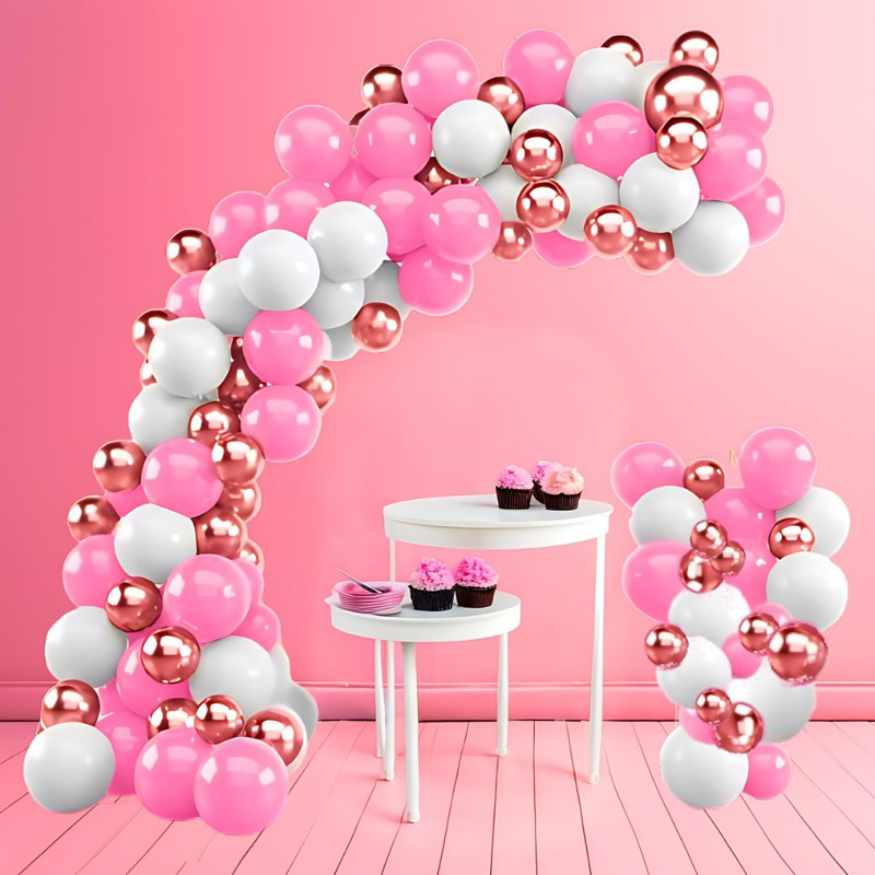 Kit 125 Balões Rosa 7”+ Branco 7”+ Rosa Metalizado5” - Balão Bexiga Liso/Cromado Para Festas e Aniversários OFF