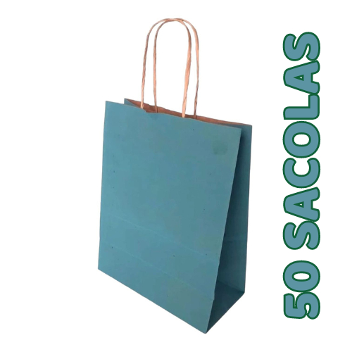 10~50 SACOLA DE PAPEL AZUL CÉU 21,5X17,5X8,5 (LC) REF:5012