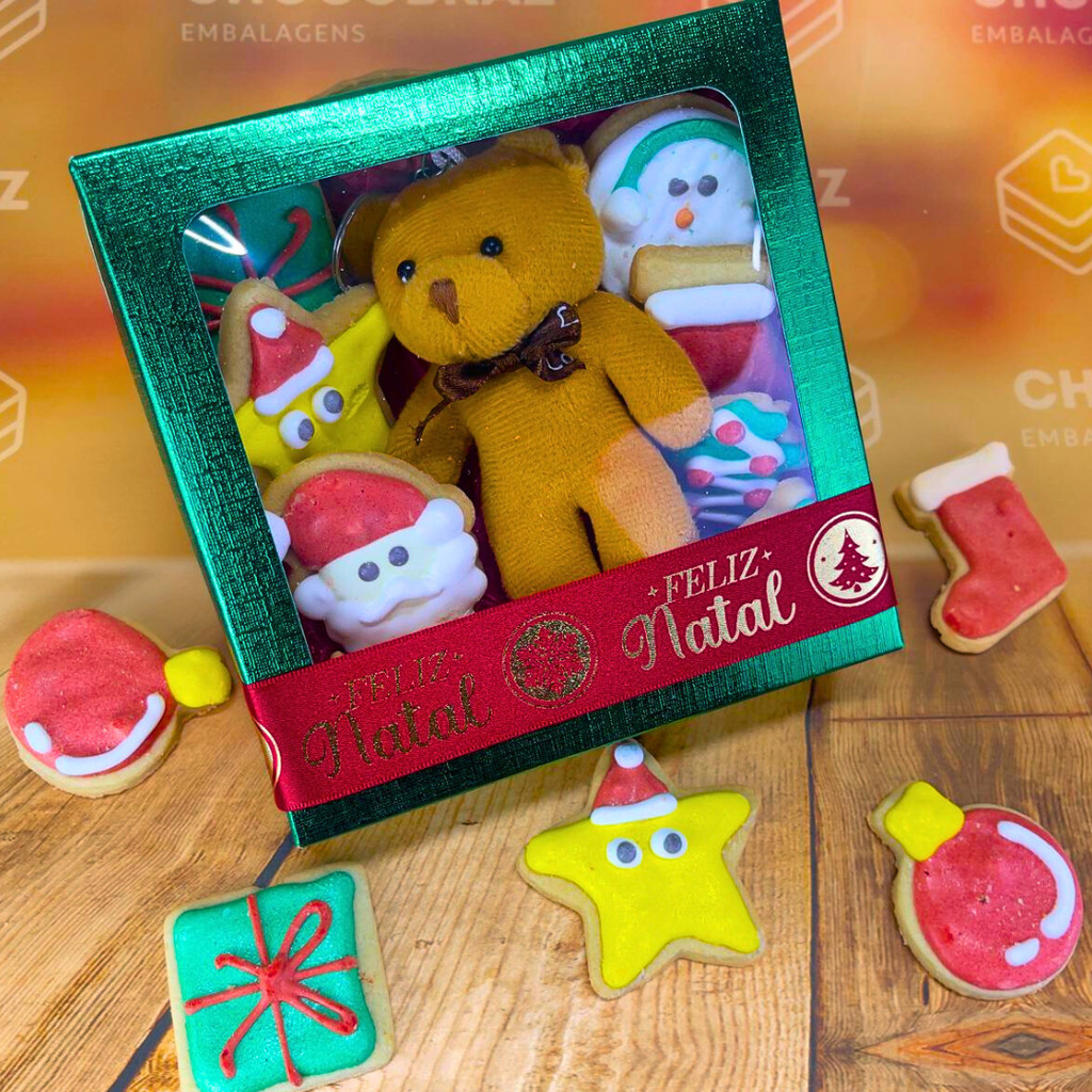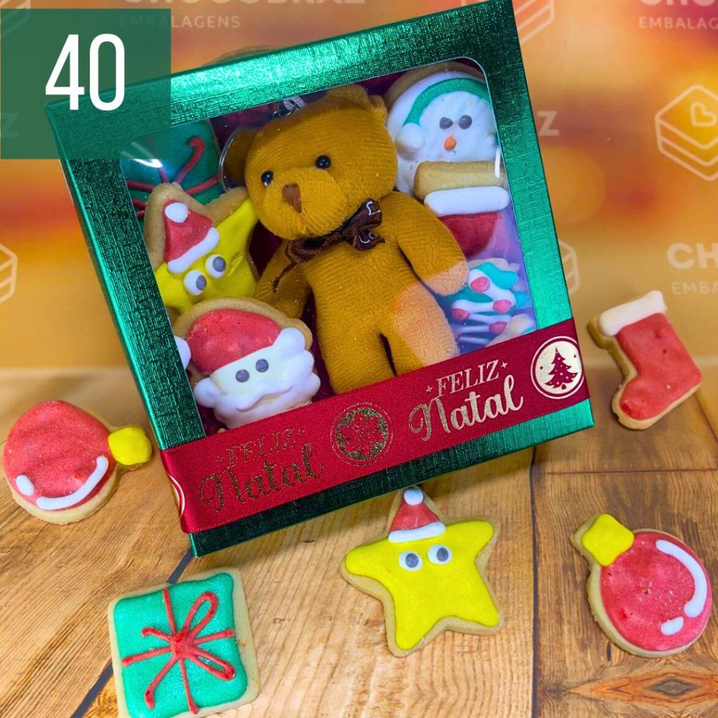 10~40 Caixa Verde Escuro Natal Textura com Visor S21 15x15x4cm ASSK