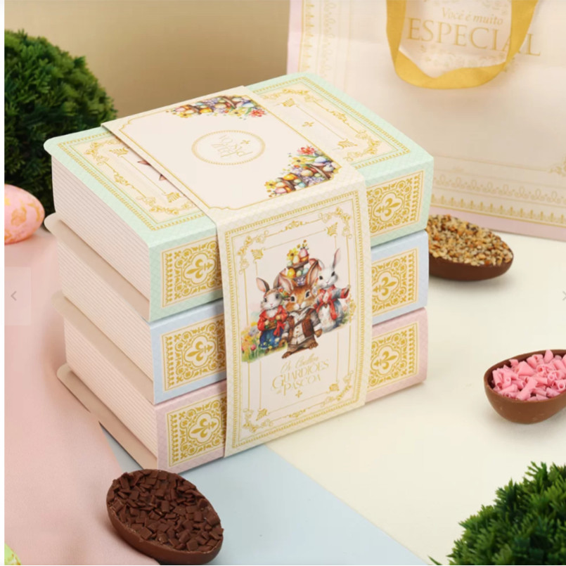 05 Kits com 3 Livros - (15) Embalagem 2 MINI OVOS 50G OU 6 doces + Cinta TRIOLOGIA 3976 (PASCOA JANGO OUTLET)