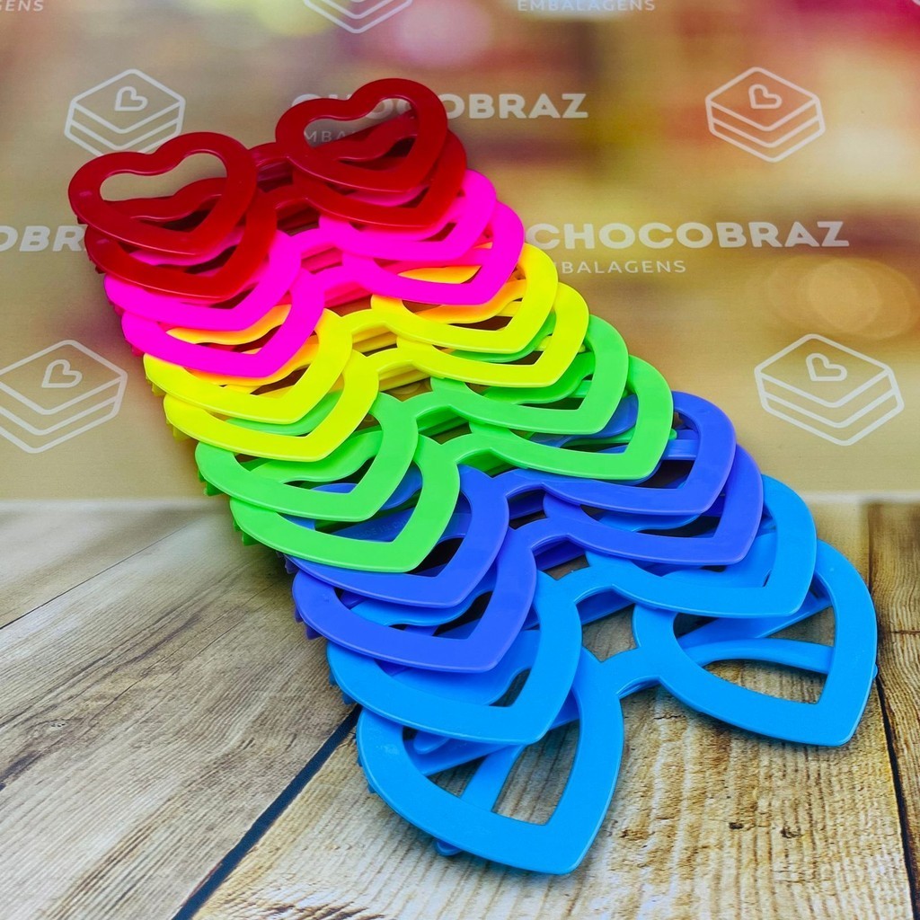 12 Óculos Divertidos Coração Festa Colorido (Ex)