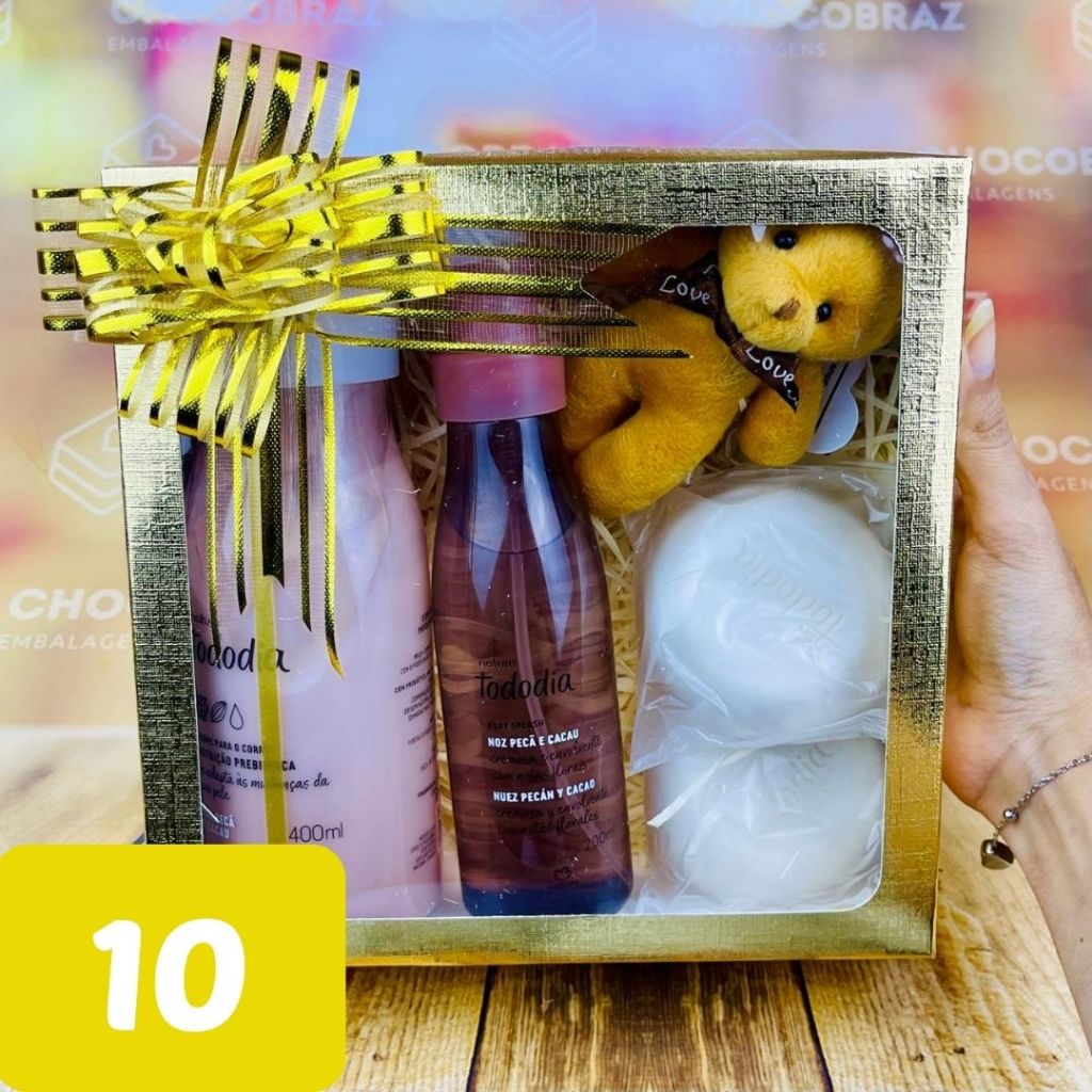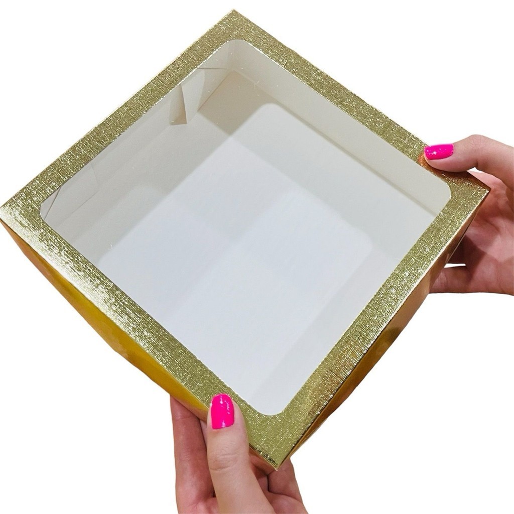 10~50 Caixa Ouro Textura com Visor S22 20x20x6 cm ASSK